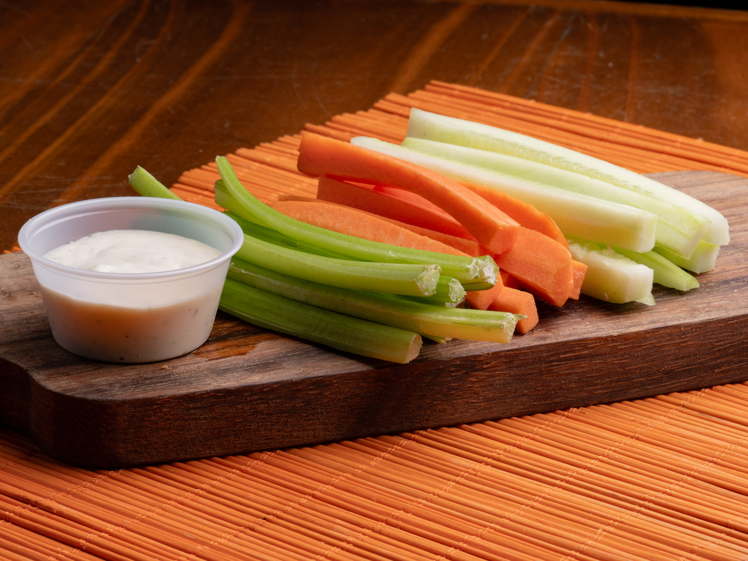 Apio, zanahoria, pepino y nuestro aderezo Ranch.