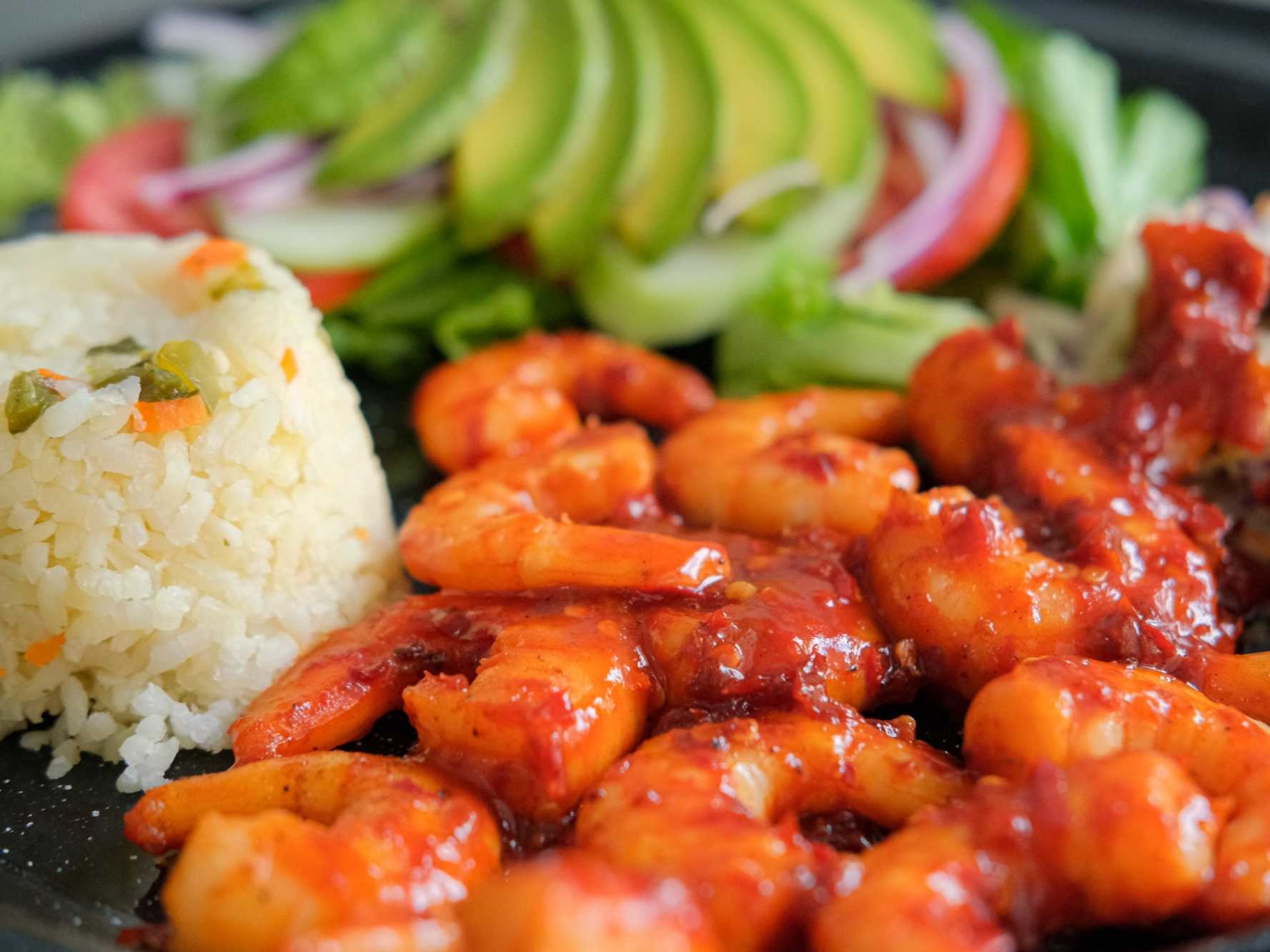 Acompañados de arroz blanco, ensalada dulce y ensalada de fresca