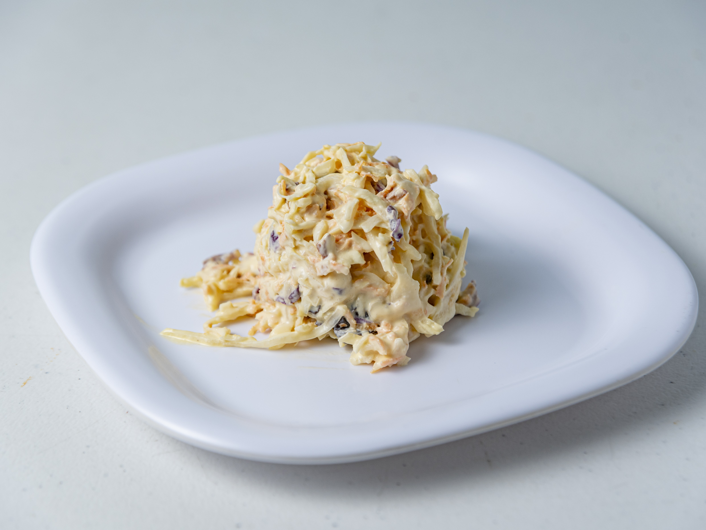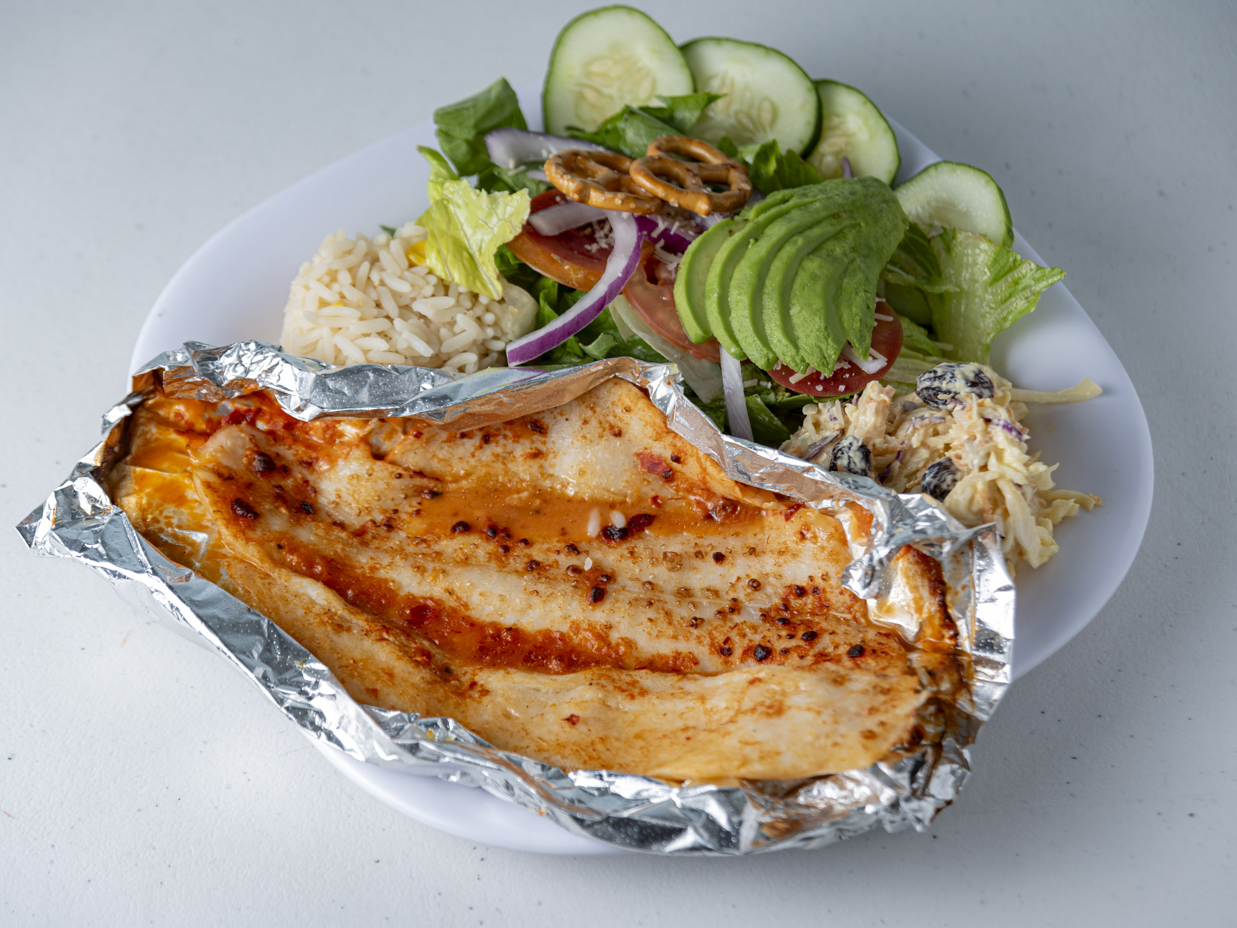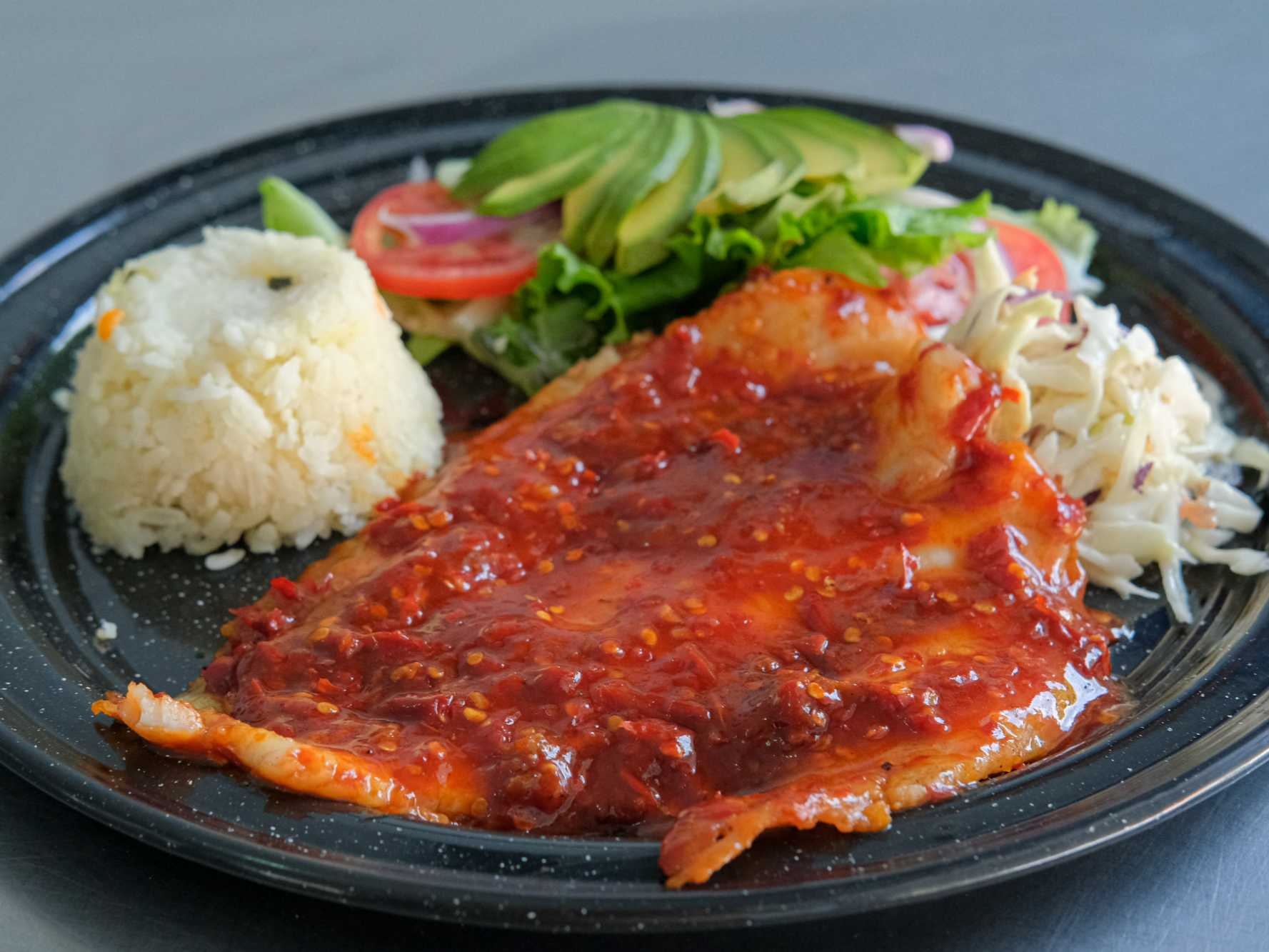 Marlin guisado con chipotle, queso manchego y ensalada dulce