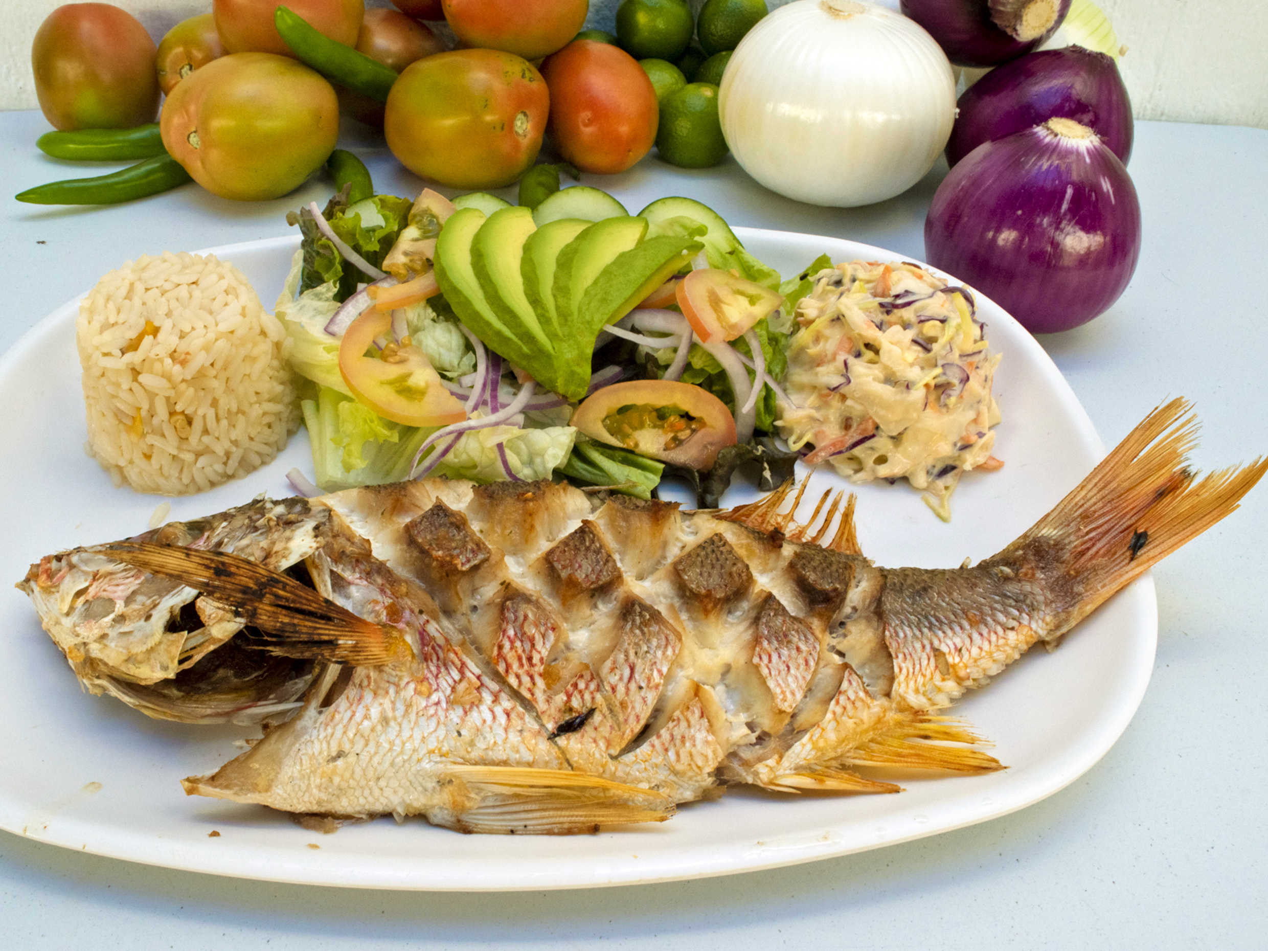 Pescado curtido,cebolla blanca, jitomate y cilantro
