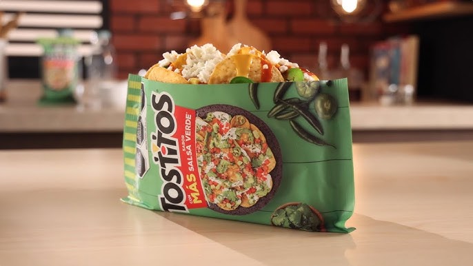 Tostitos con queso amarillo hecho por nosotros y chiles jalapeños.