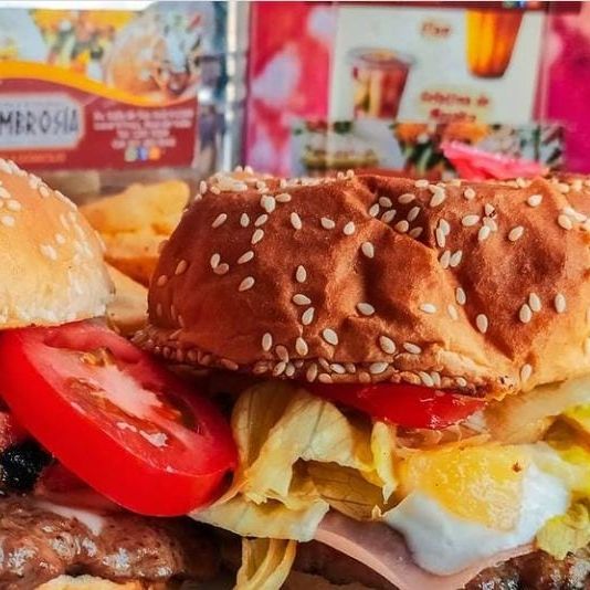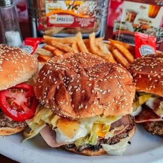 Doble carne, verdura, aderezos, doble queso amarillo.