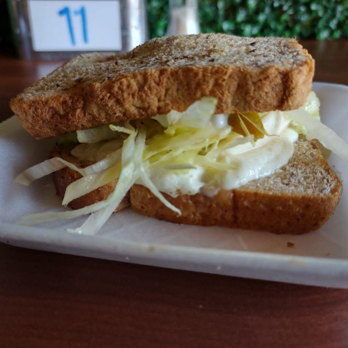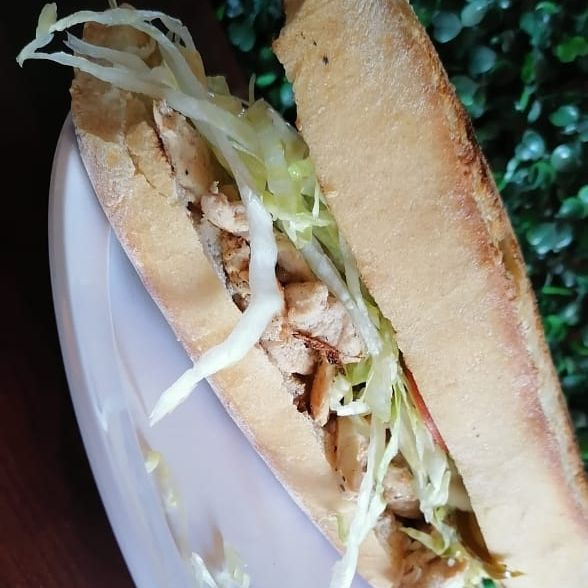 Birote dorado, crema, mayonesa, pollo a la plancha y su verdura.