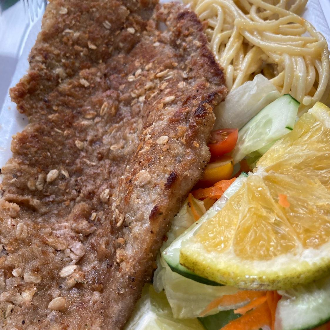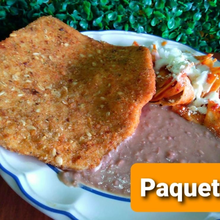 PAQUETE # 5) Milanesa de poll+ Chilaquiles+ Bebida