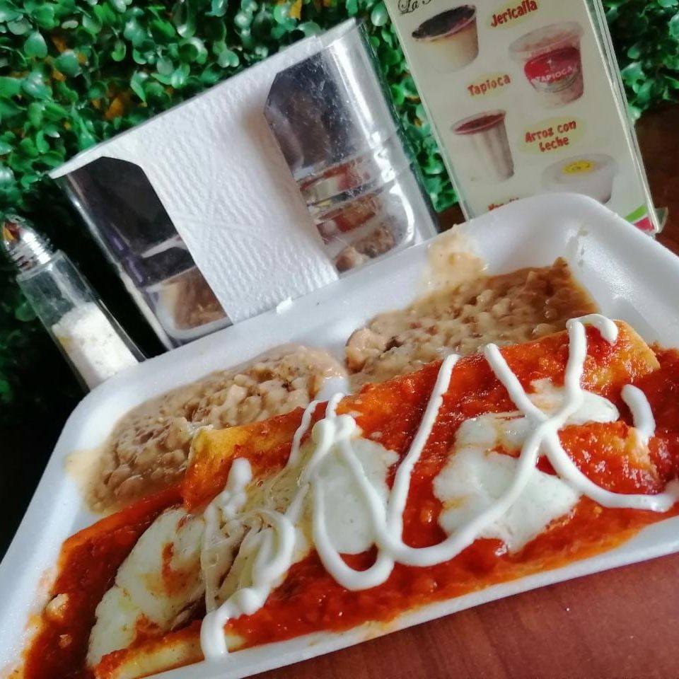 Enchiladas rellenas( elige tu favorita) incluyen frijoles.