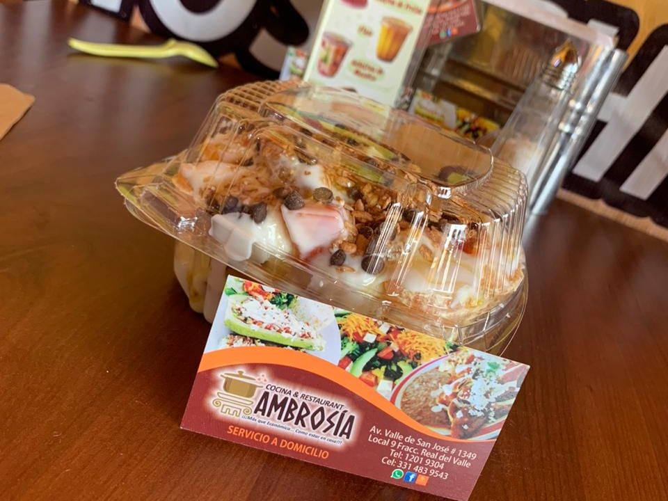 Lechuga, cebolla, atún, aguacate, jitomate, totopos.
