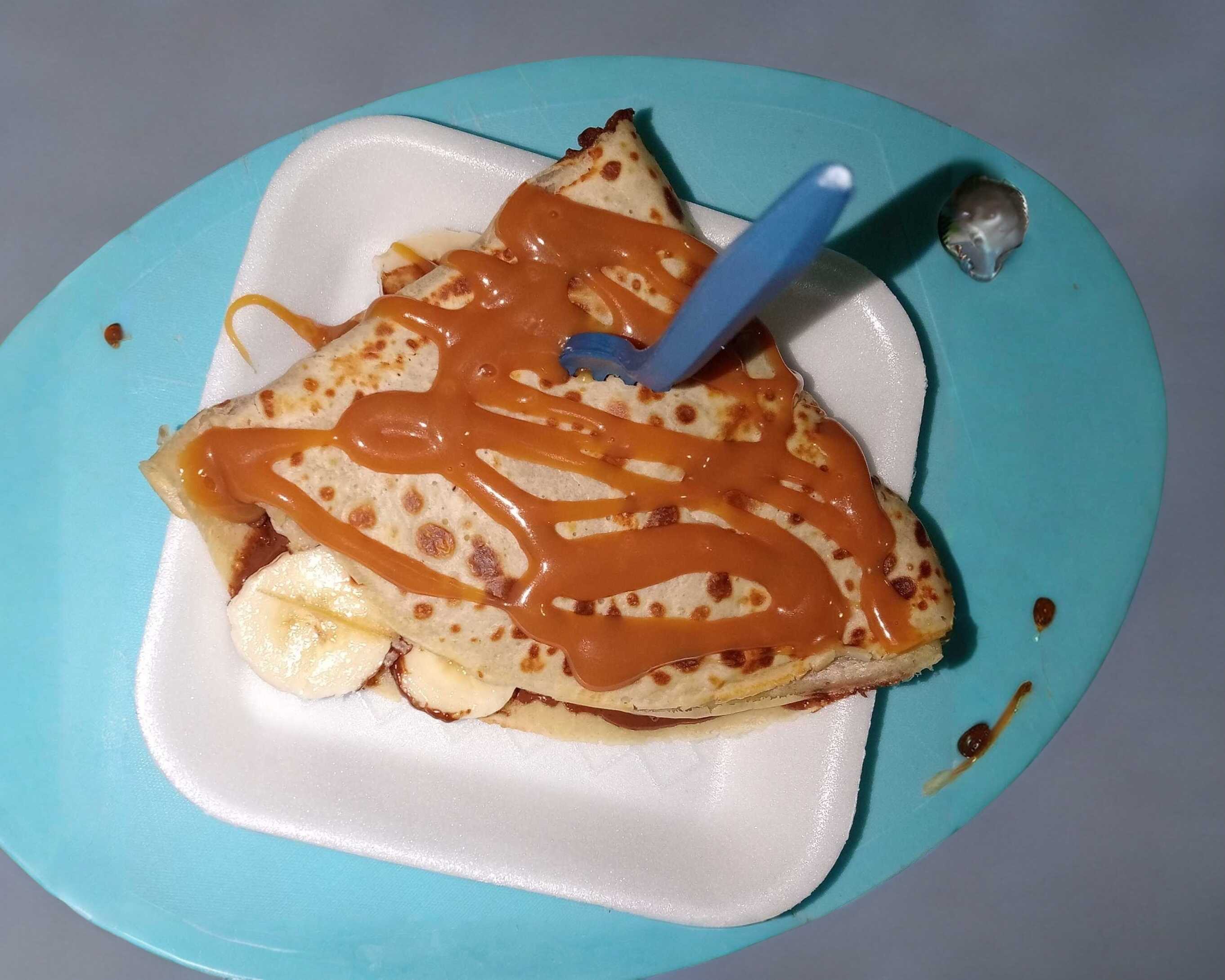 deliciosa crepa de platano con nutella y cajeta