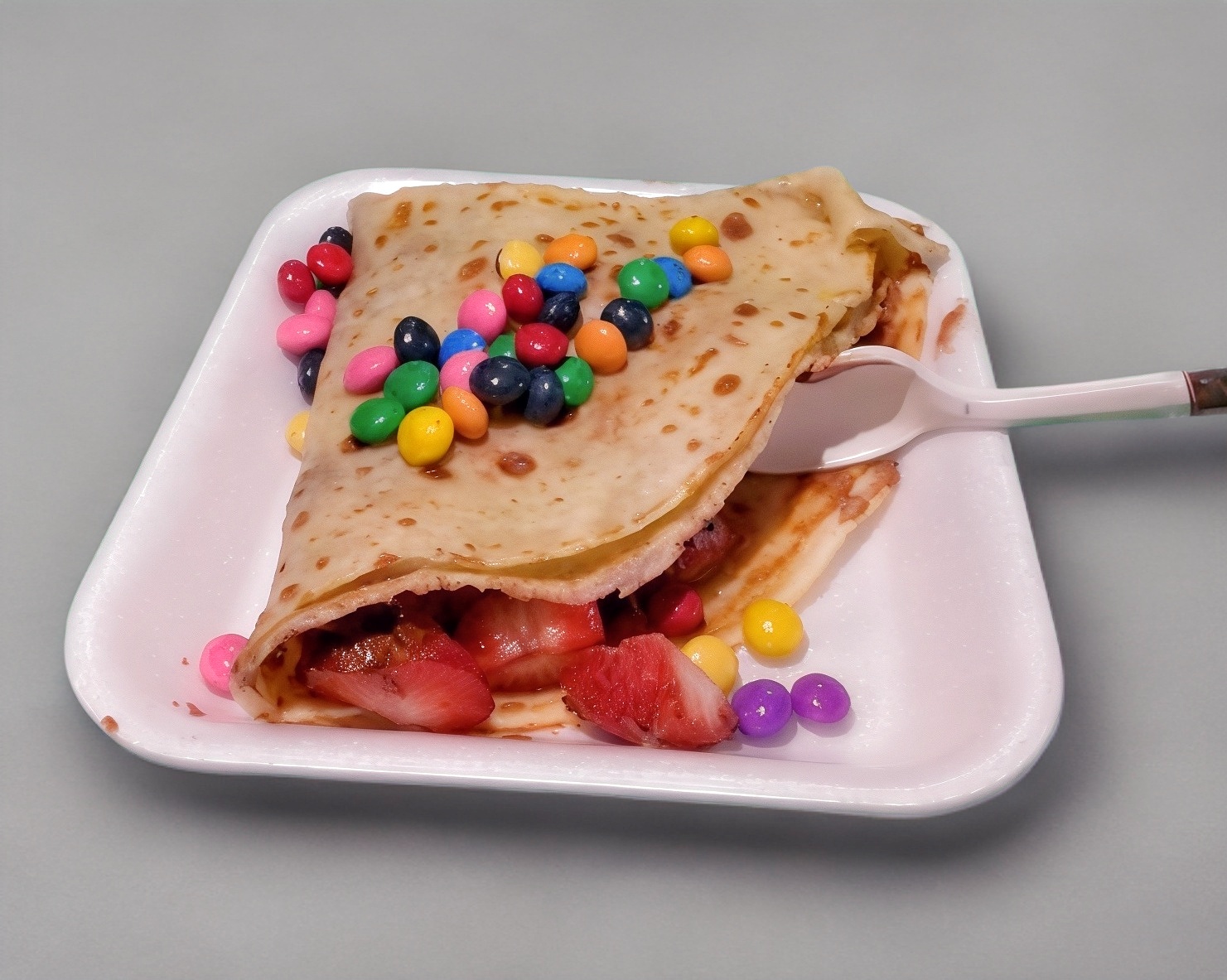 crepa dulce de fresa con luneta y lechera