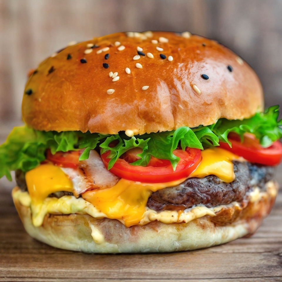 Carne de hamburguesas 100gr, Lechuga, Jitomate, Cebolla, Aguacate y Queso Amarillo