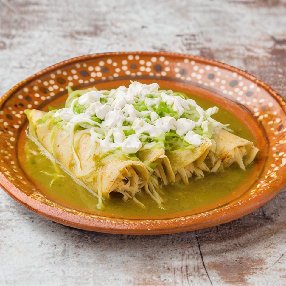 5 Ricas enchiladas verdes de pollo, con queso gratinado