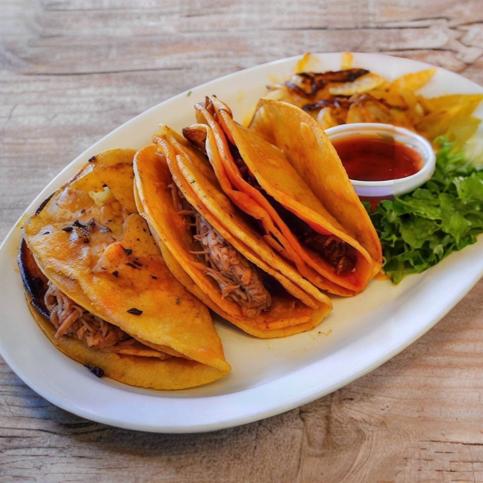 1 Taco de Barbacoa: Rico taco de barbacoa, acompañado con cebolla frita y salsa por aparte.