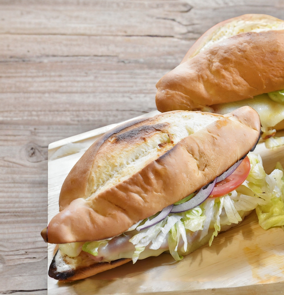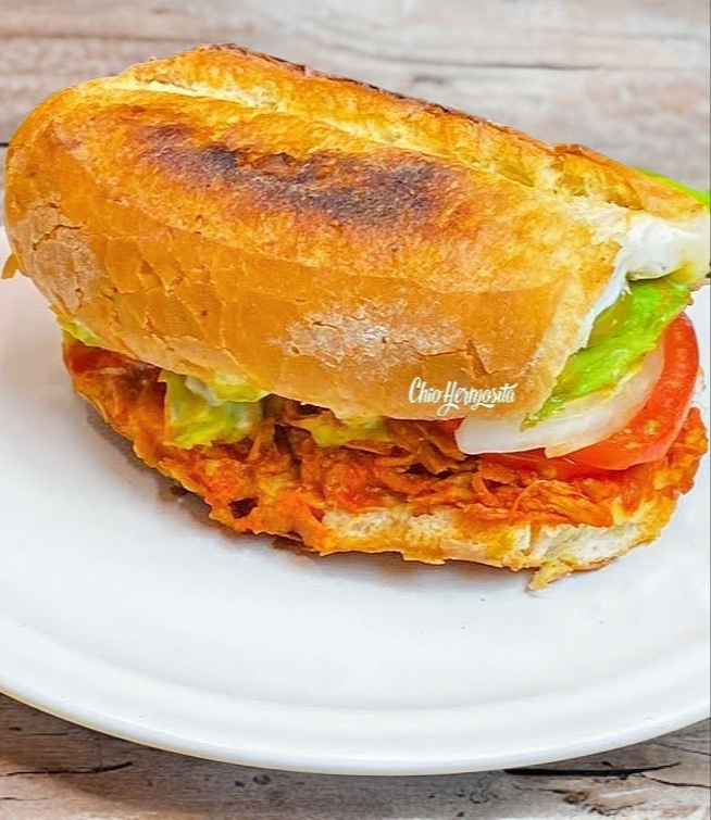 Lonche de Pierna con Lechuga, Jitomate, Cebolla, Aguacate, Jamon, Salchicha y Panela
