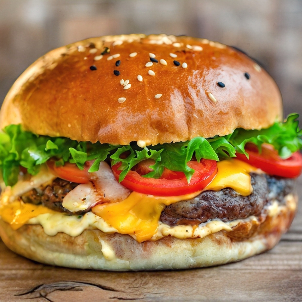 Doble carne de hamburguesas 100gr, Lechuga, Jitomate, Cebolla, Aguacate y Queso Amarillo