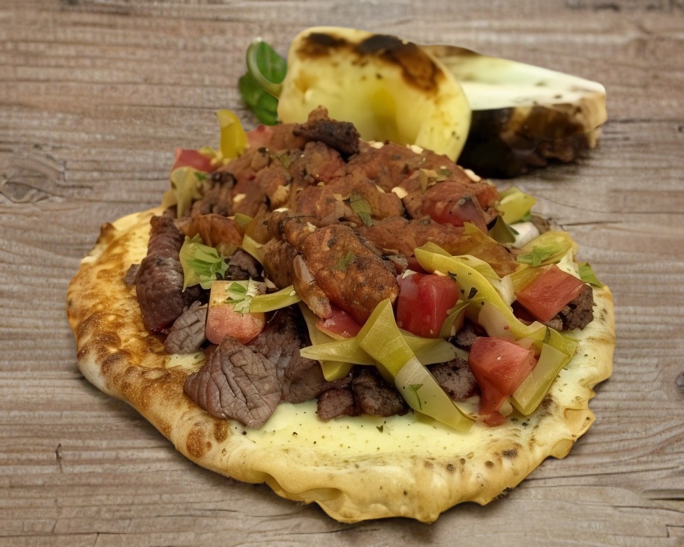 Sope pellizcado + mantequilla + queso + carne asada