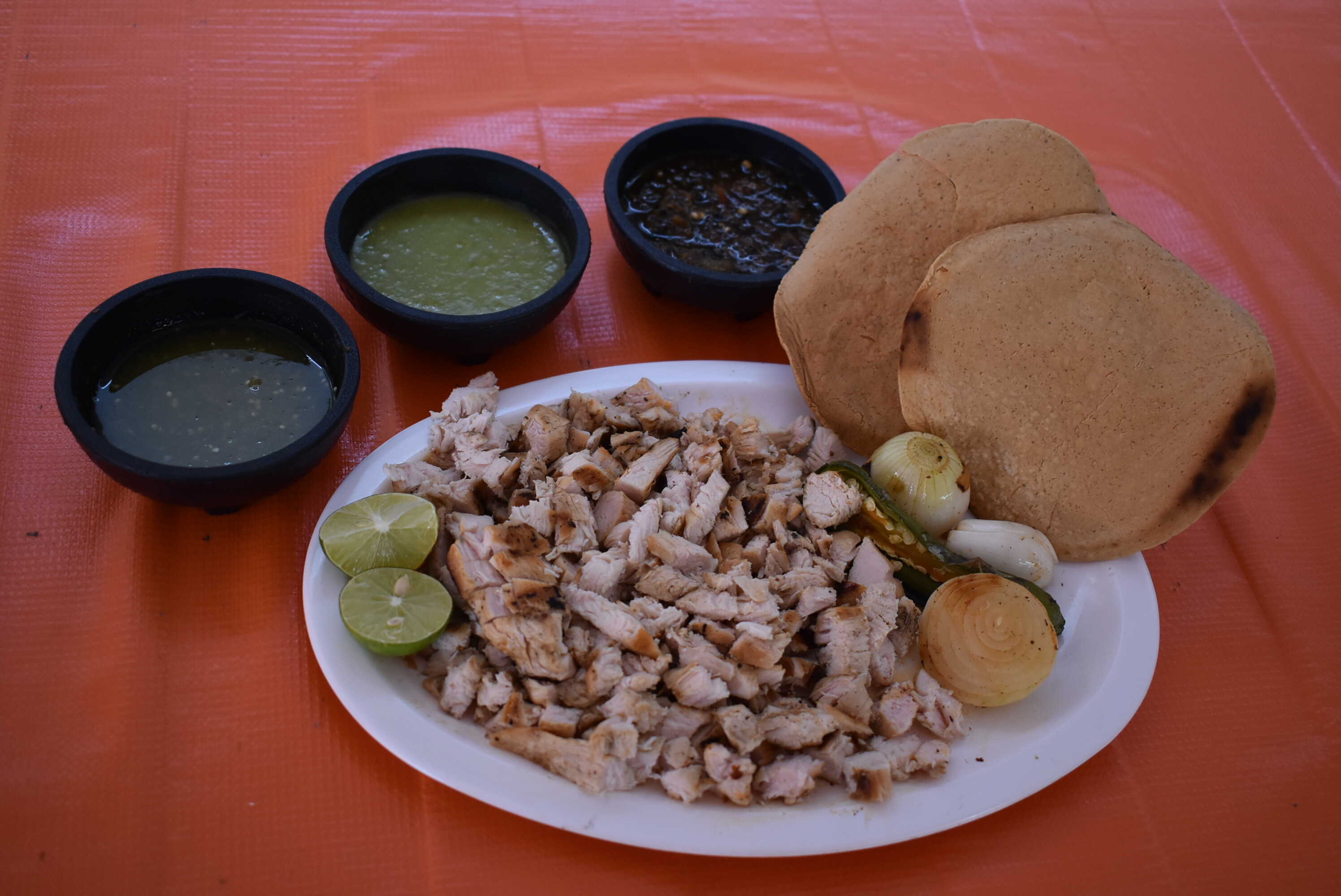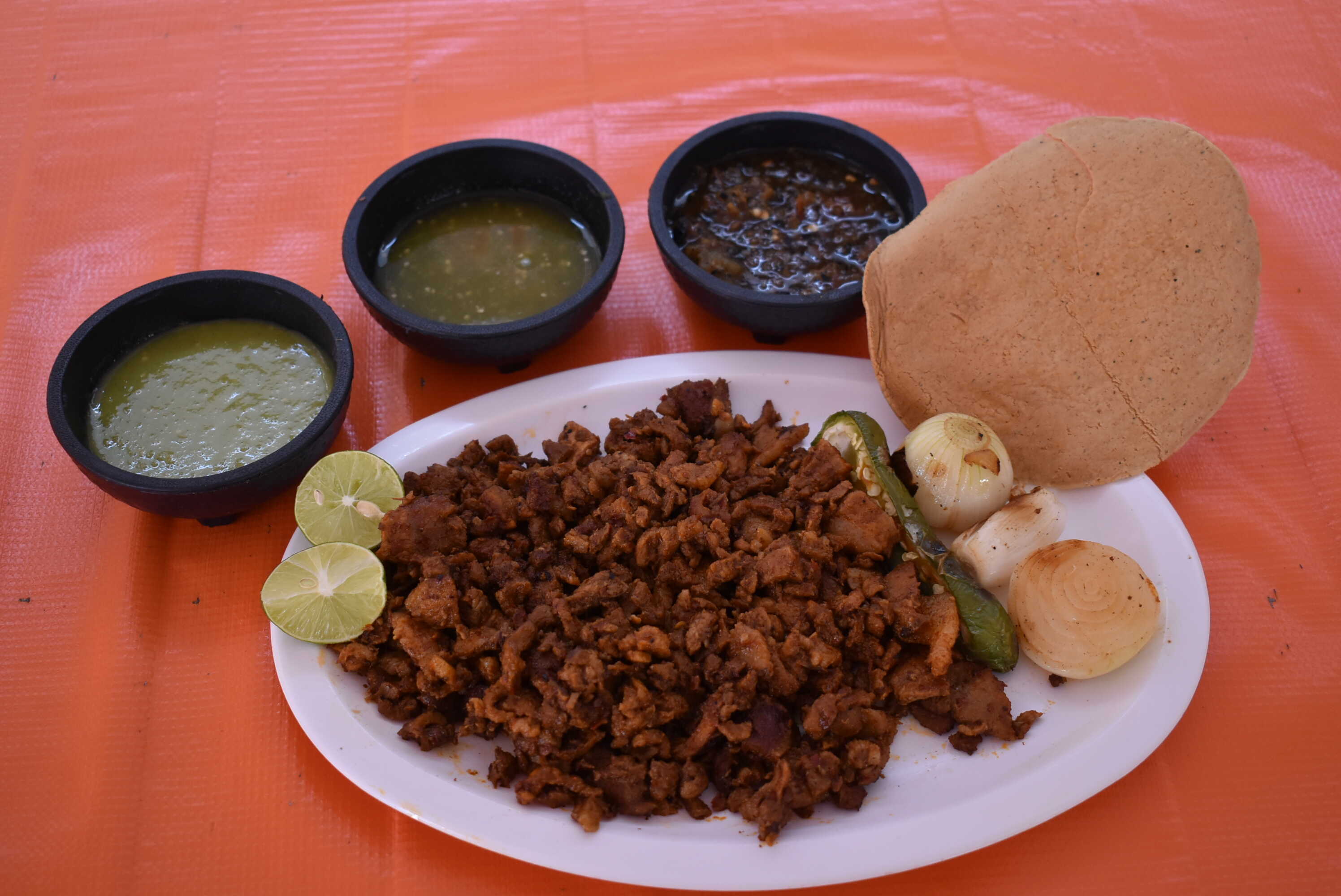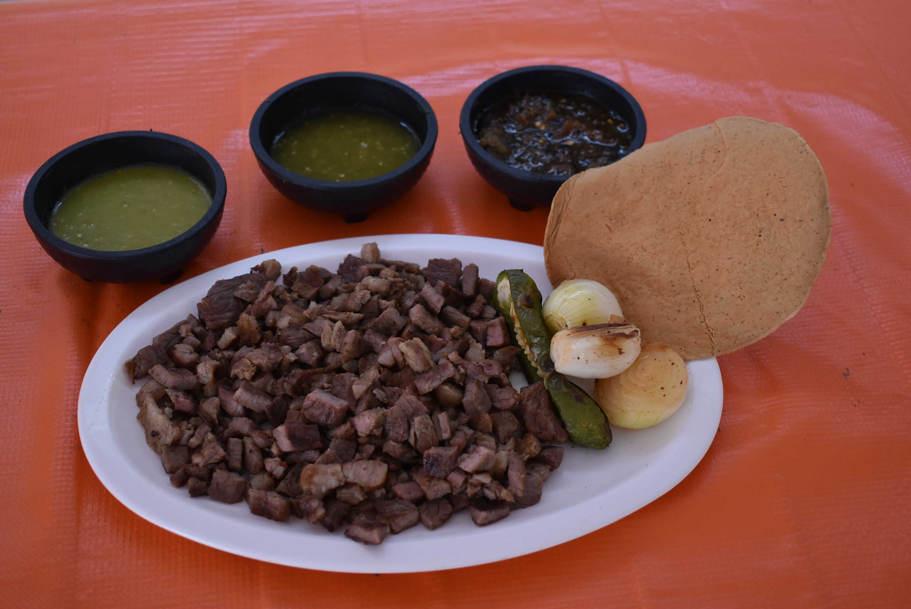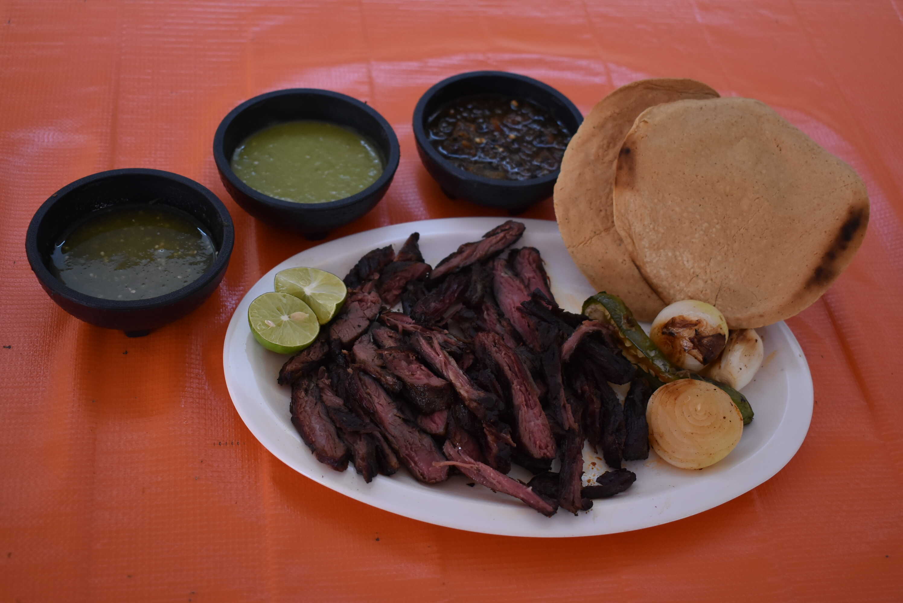 Tamaño a elegir. 180 gr carne orden chica, 200 gr carne orden mediana, 220 gr carne orden grande. Todas las ordenes incluyen tortillas, doradas, frijoles, cebolla guisada y salsas.