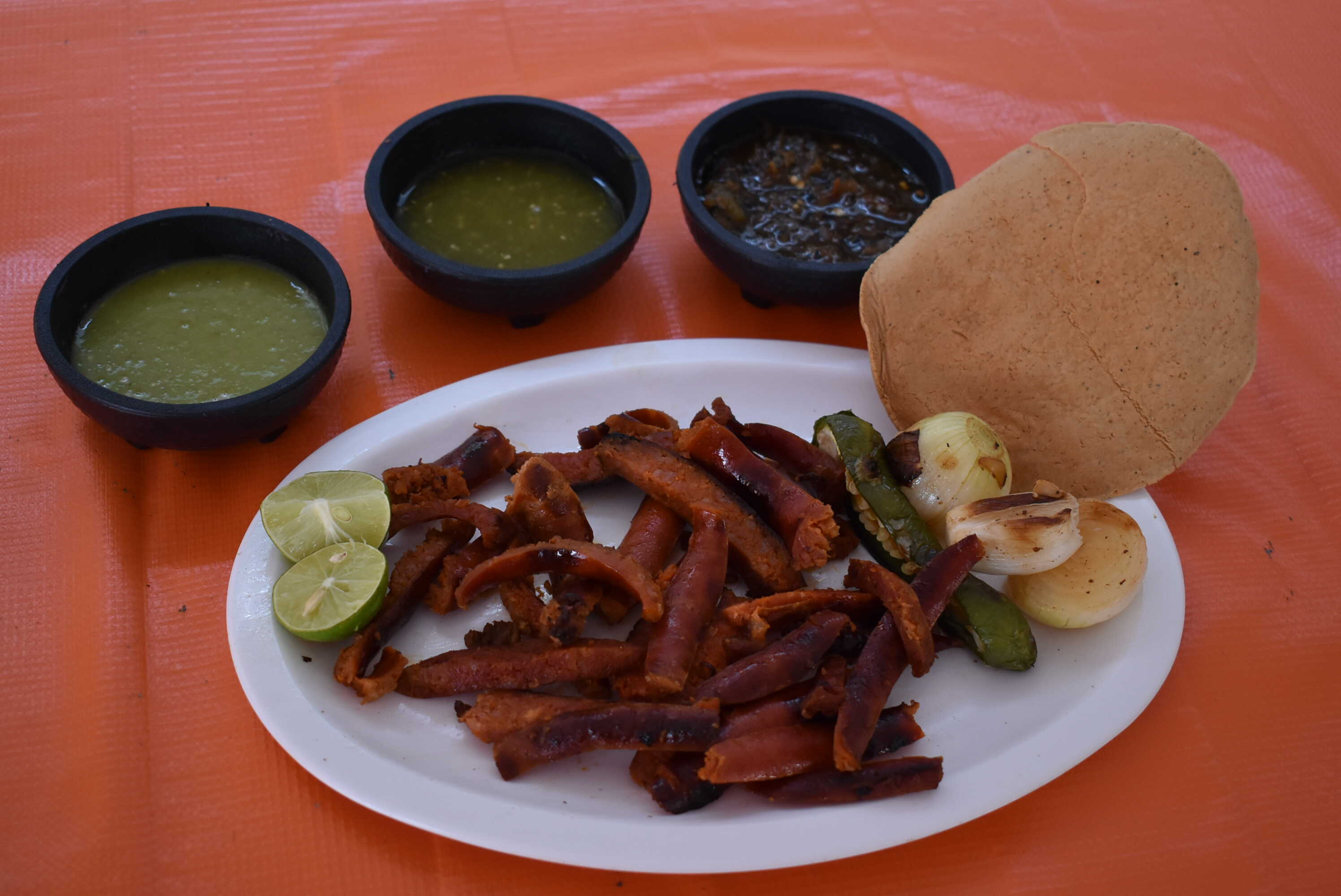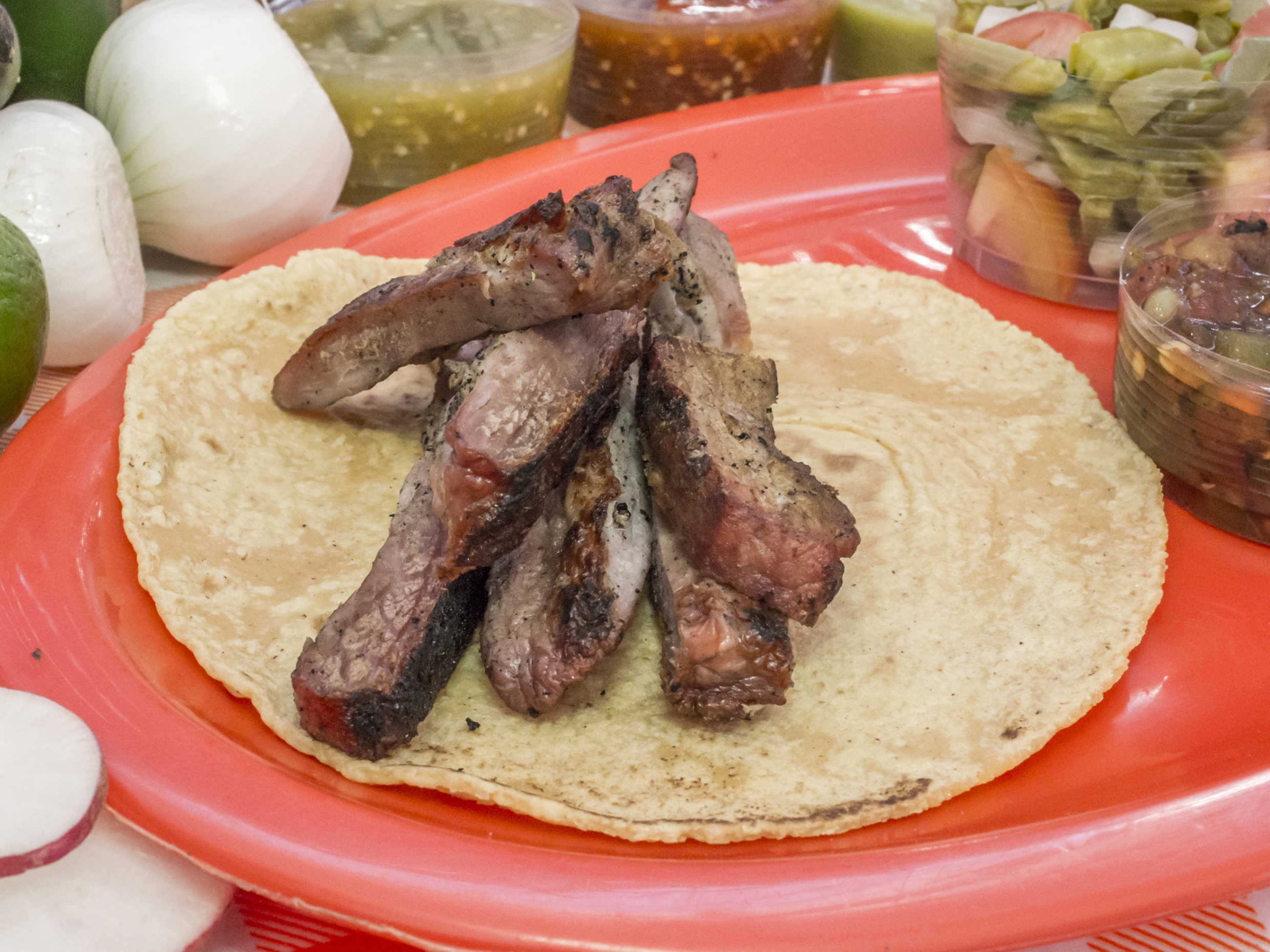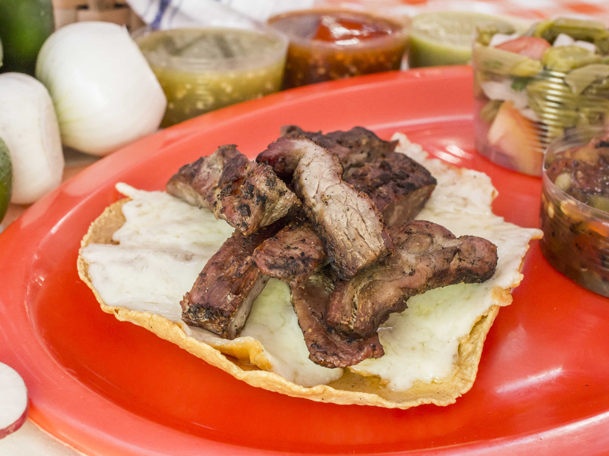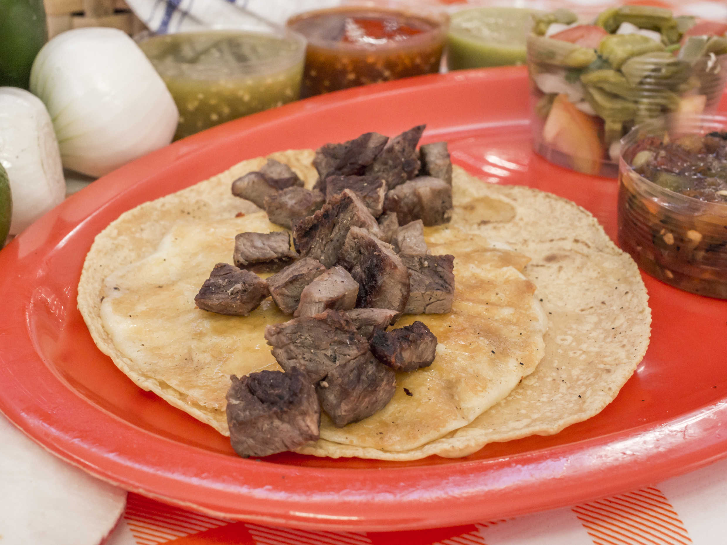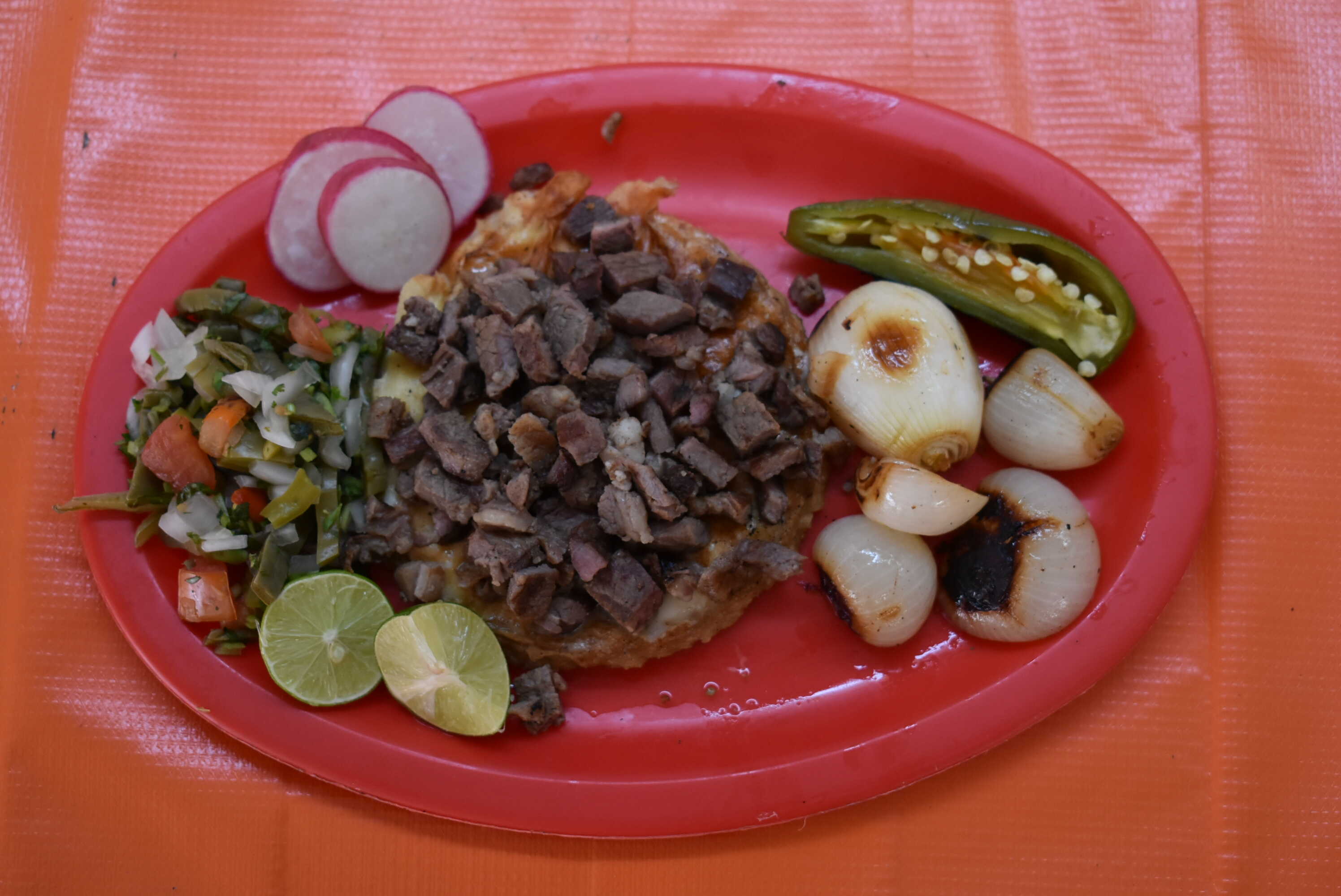 Tamaño a elegir. 180 gr carne orden chica, 200 gr carne orden mediana, 220 gr carne orden grande. Todas las ordenes incluyen tortillas, doradas, frijoles, cebolla guisada y salsas.