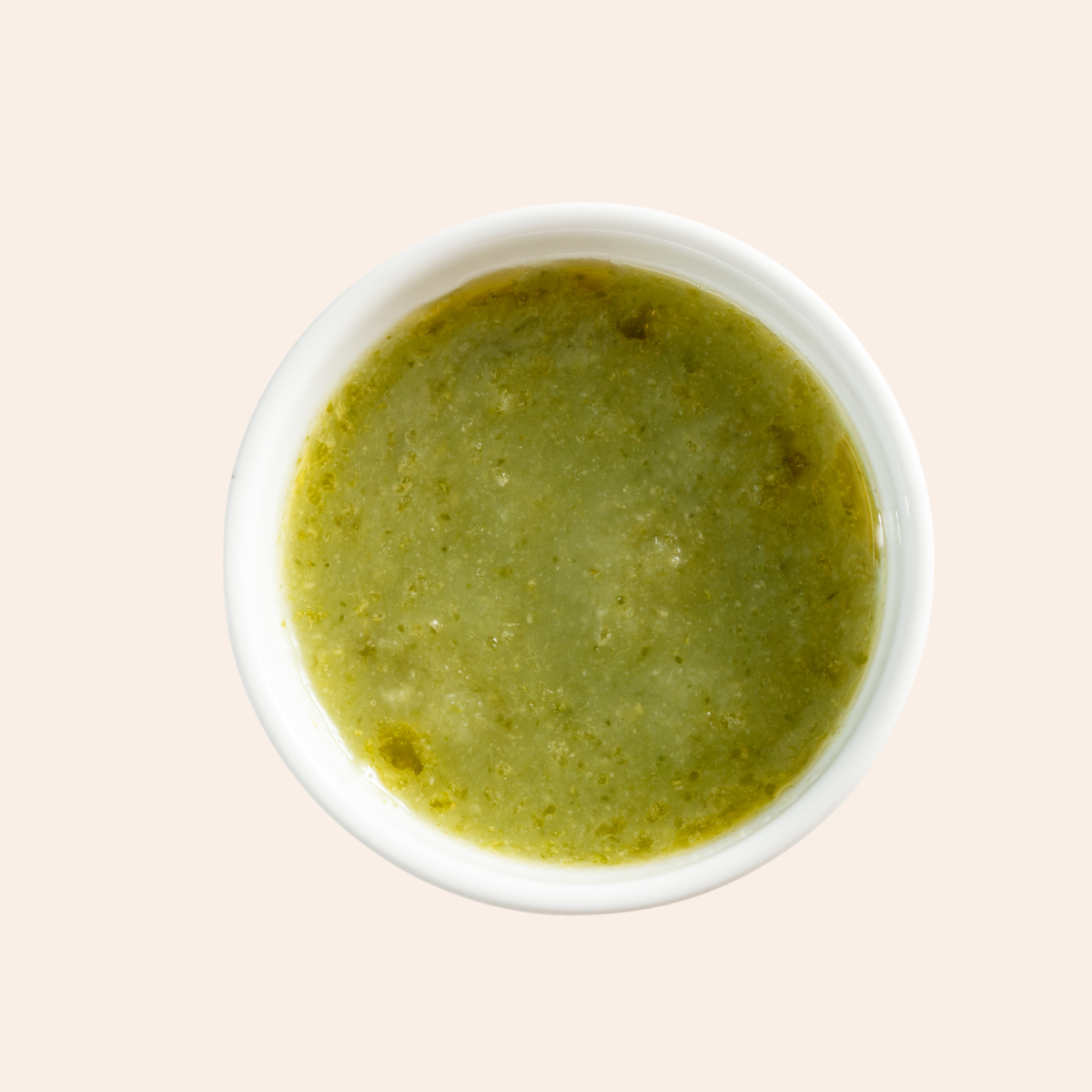 Salsa verde hecha con tomate, cebolla, chile verde y cilantro. picor bajo