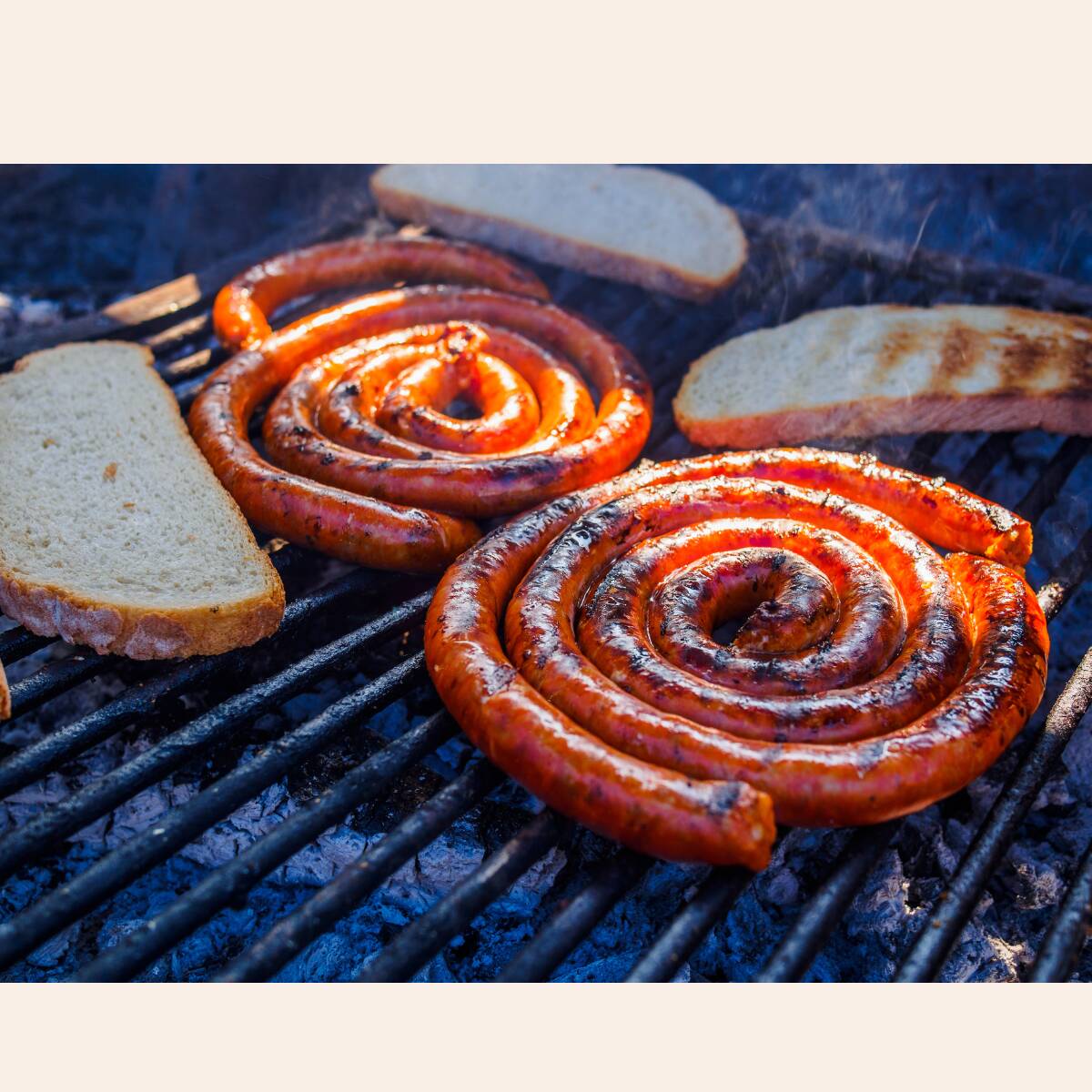 Deliciosa chistorra asada, jugosa y llena de sabor lista para comer