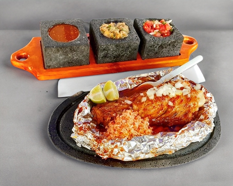Carne asada a fuego lento con leña de encino. Incluye pura Costilla. Acompañamiento: salsas, pico de gallo y tortillas