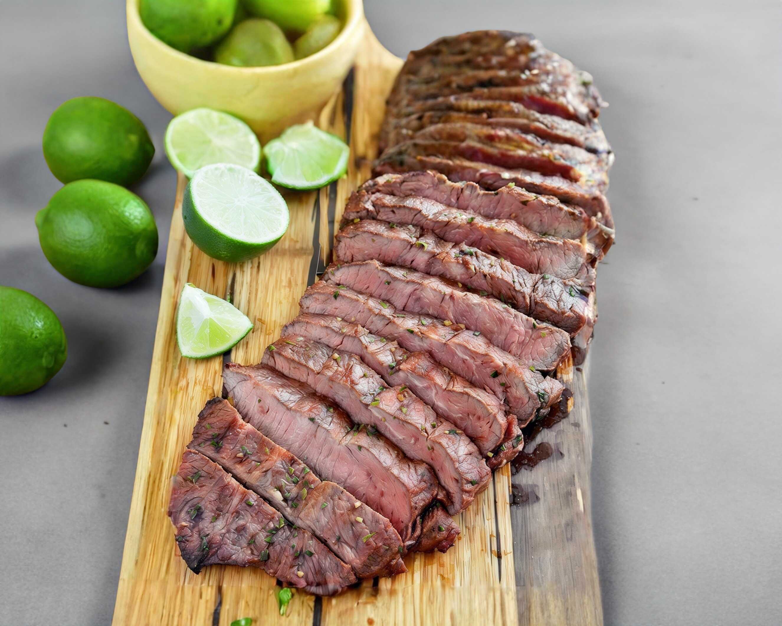 Arrachera asada al carbón. Incluye tortillas, salsas, pico de gallo