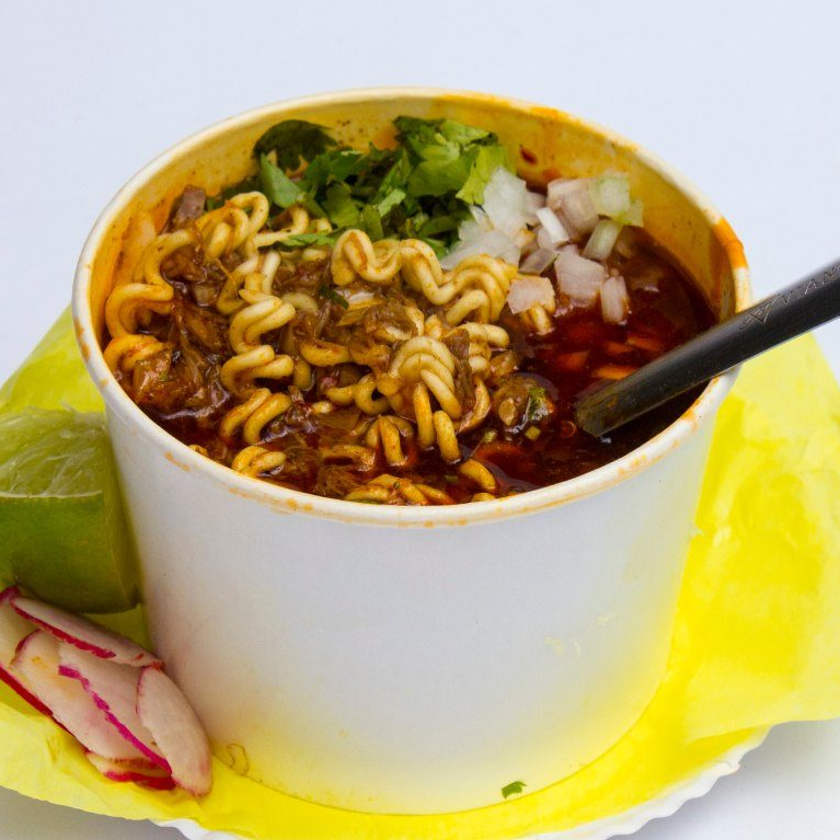 delicioso y calientito ramen con birria, verdurita aparte