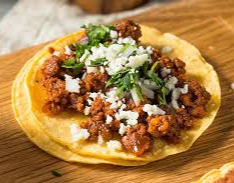 1 Taco relleno de carne de res asada, que se cocina a la parrilla y se corta en trozos pequeños.