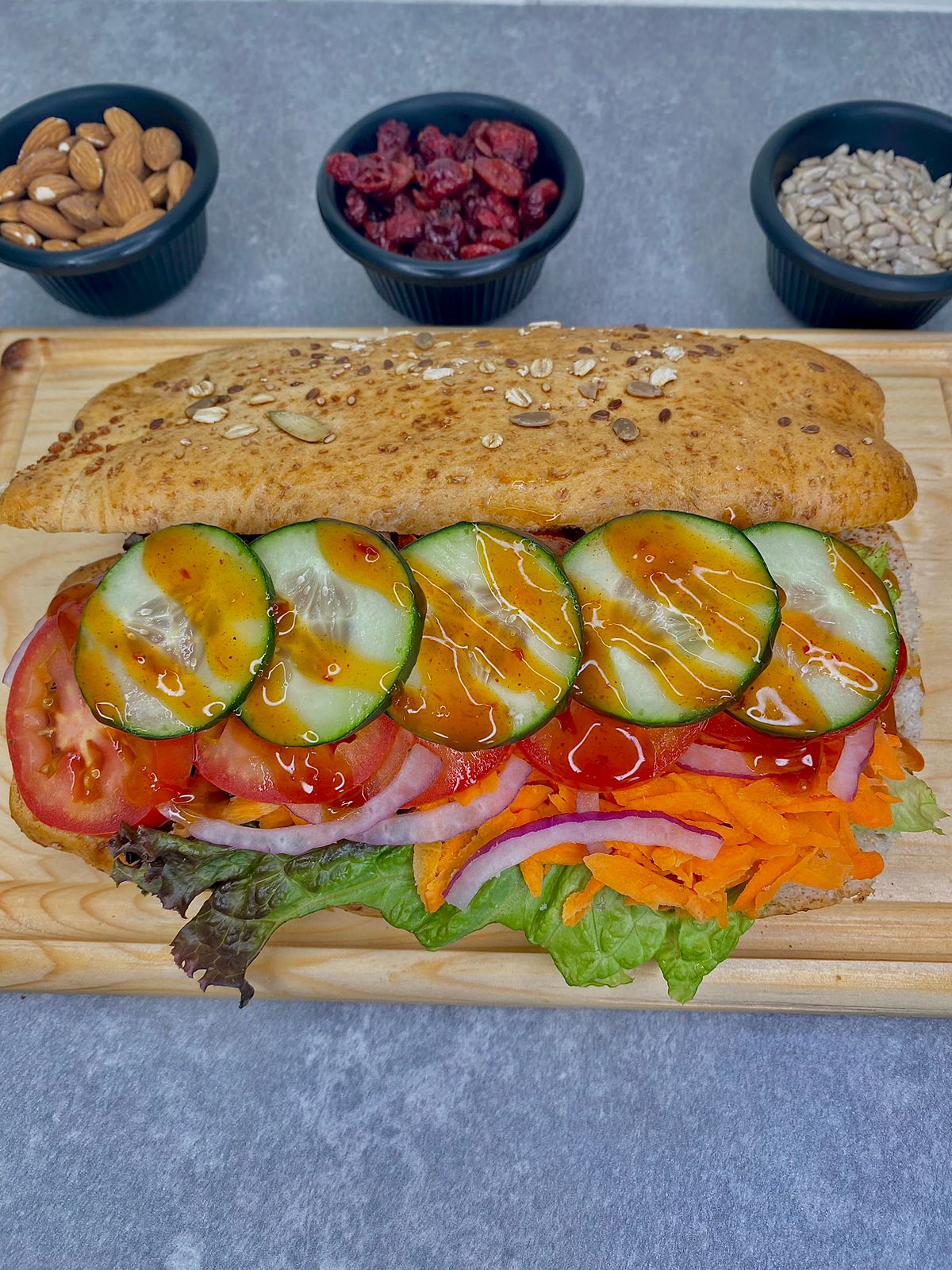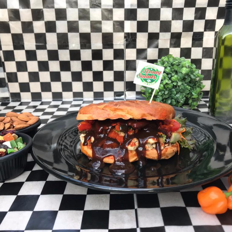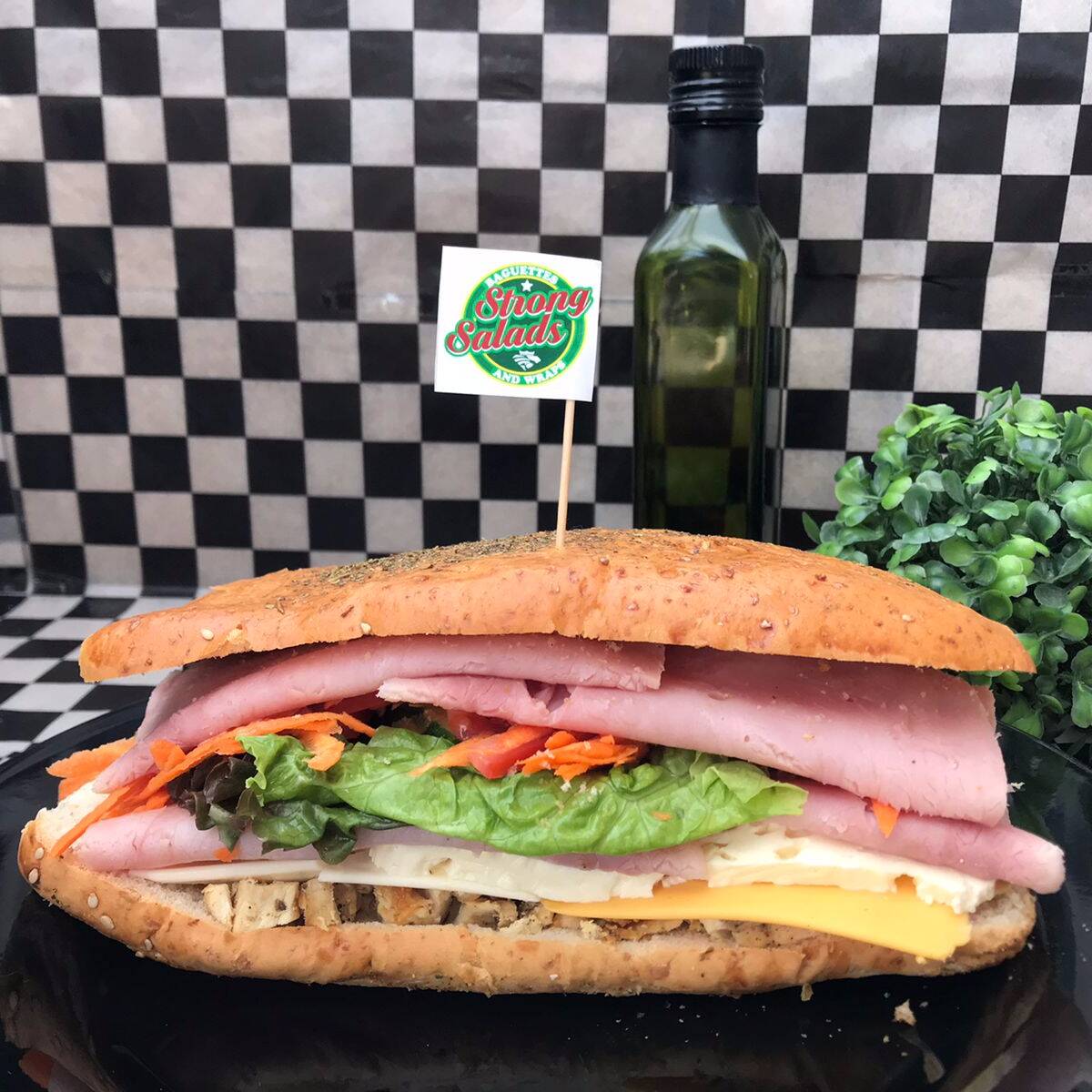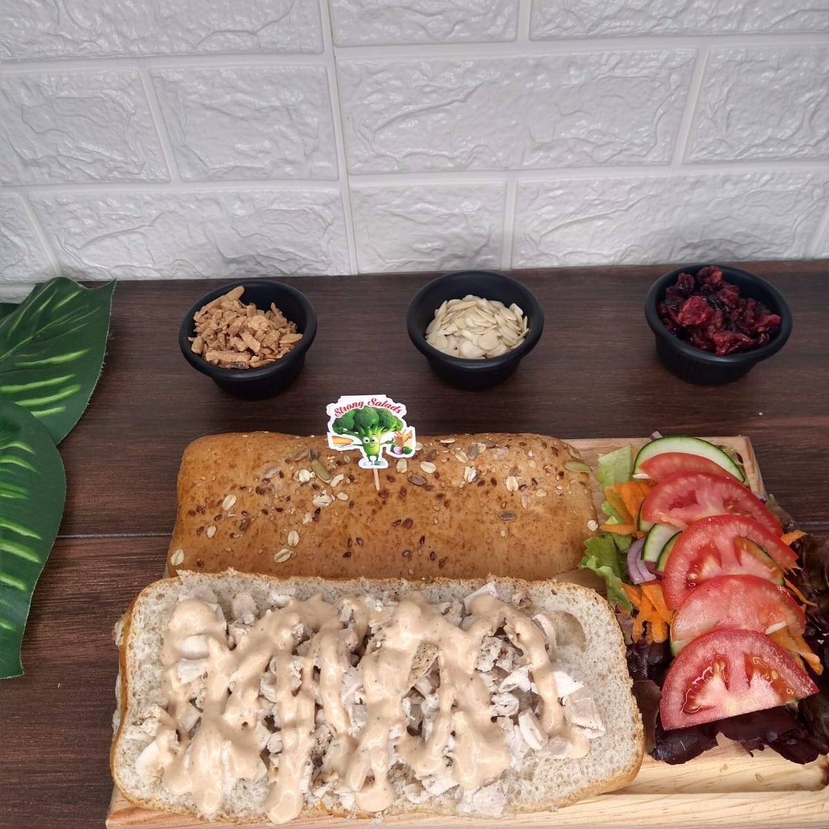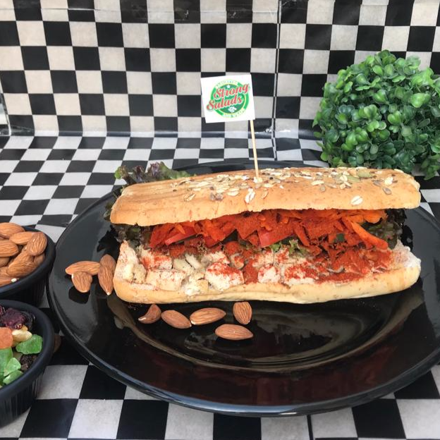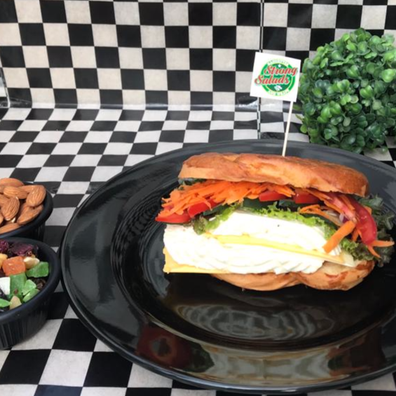 Pollo a las finas hierbas a la plancha, Pollo BBQ o Pollo Paprika, 3 Quesos ( Queso manchego, amarillo y panela); Jamon, Pechuga de pavo, jitomate, zanahoria, pepino, cebolla morada, lechuga sangría e italiana. Todo con aderezo gourmet. 😍😋
