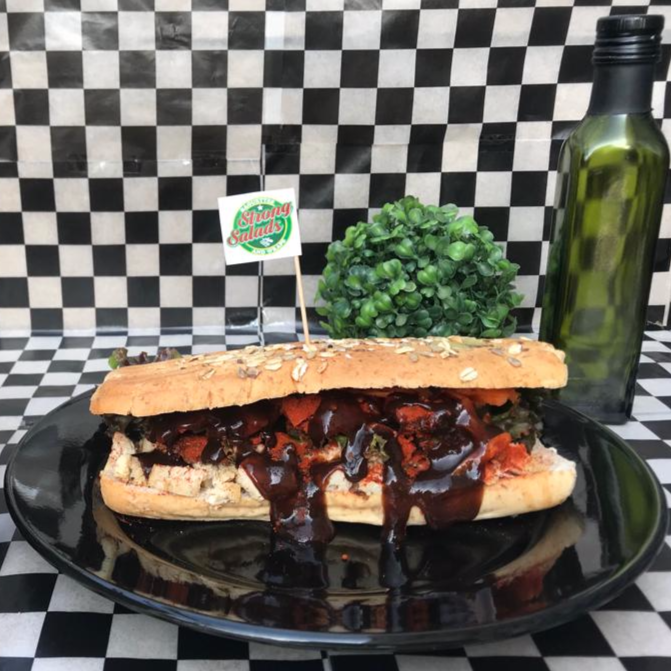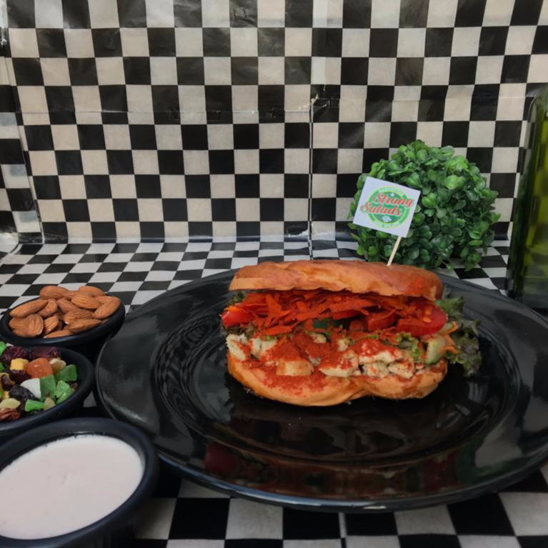 1 BAGUETTE POLLO A LA BBQ + 1 ENSALADA CH