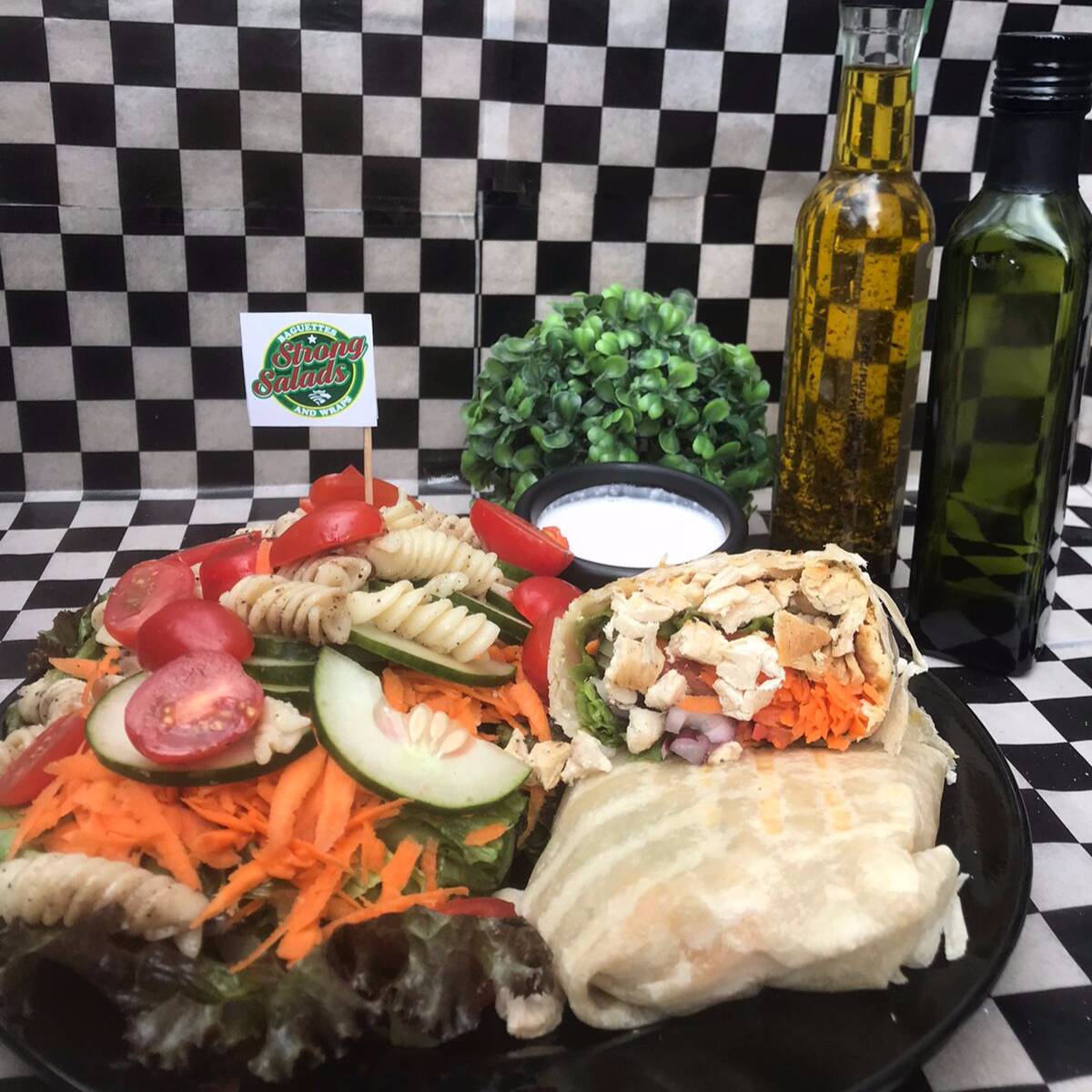 Wrap de su preferencia con ensalada (Lechuga, pasta e ingredientes: Pepino, zanahoria y jitomate) aderezo gourmet.😋🤩