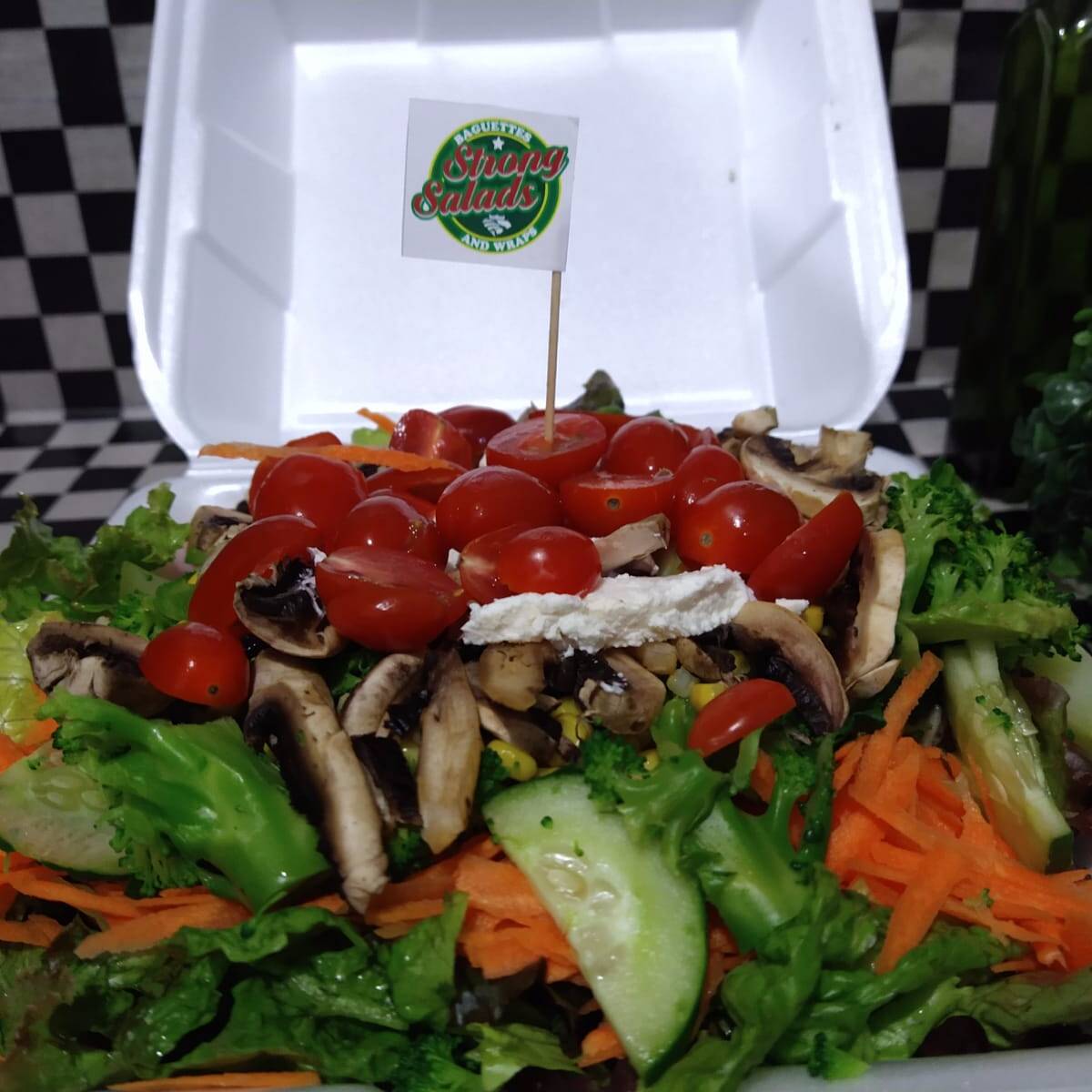 Pimientos, cebolla y champiñones, jitomate, zanahoria, pepino, cebolla morada y lechuga sangría, lechuga italiana con aderezo gourmet. 🥦🍅🥒😋