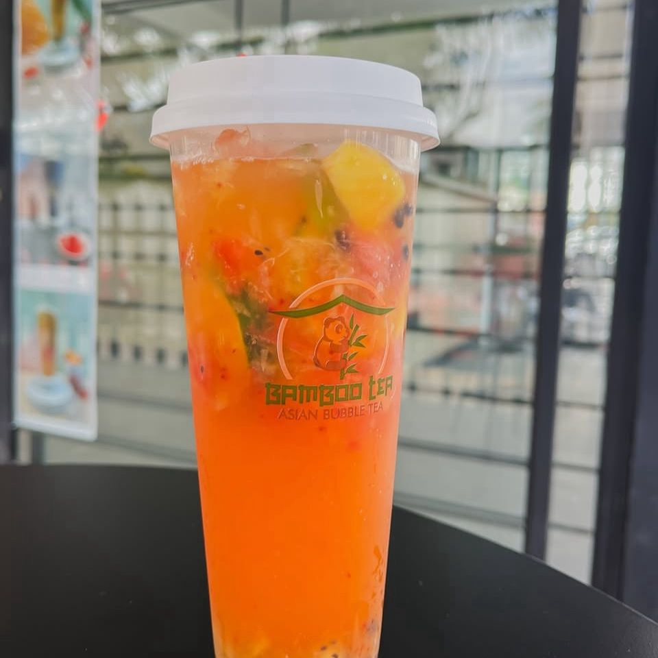 Una combinación de frutas en té refrescante para un sabor colorido y delicioso.