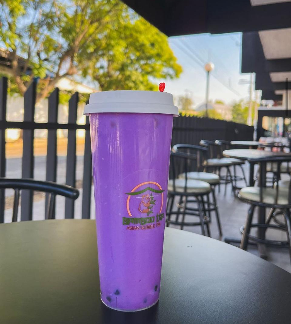 Milk tea de taro con su clásico sabor dulce y textura cremosa. ¡Un favorito!