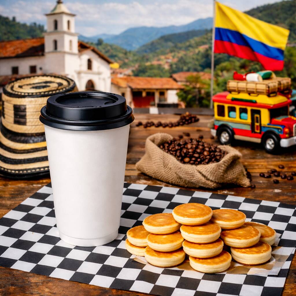 15 mini hotcakes , ☕☕ 2 cafés colombianos grandes.