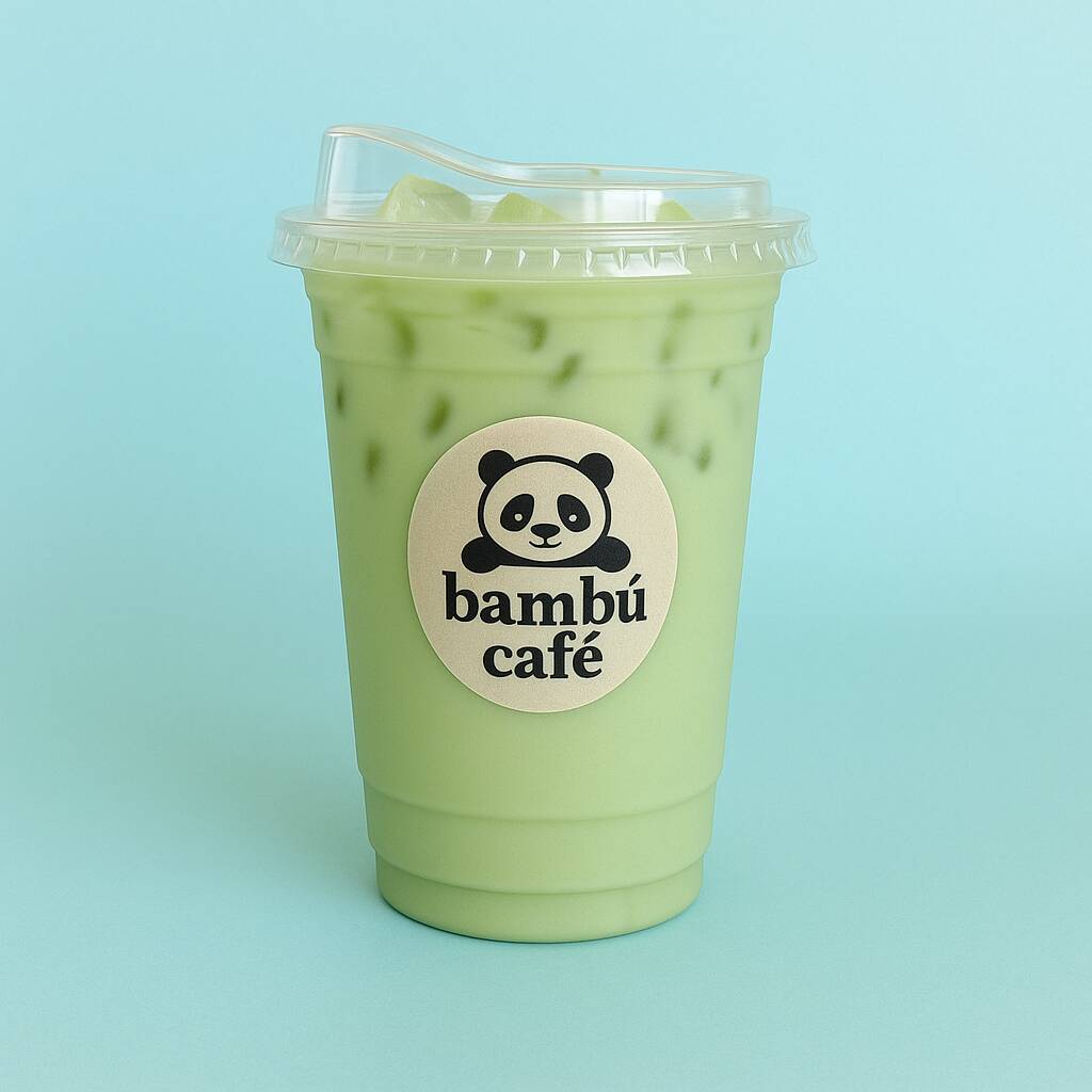 Matcha en las rocas: té verde matcha en polvo, leche y hielo, servido frío y cremoso.