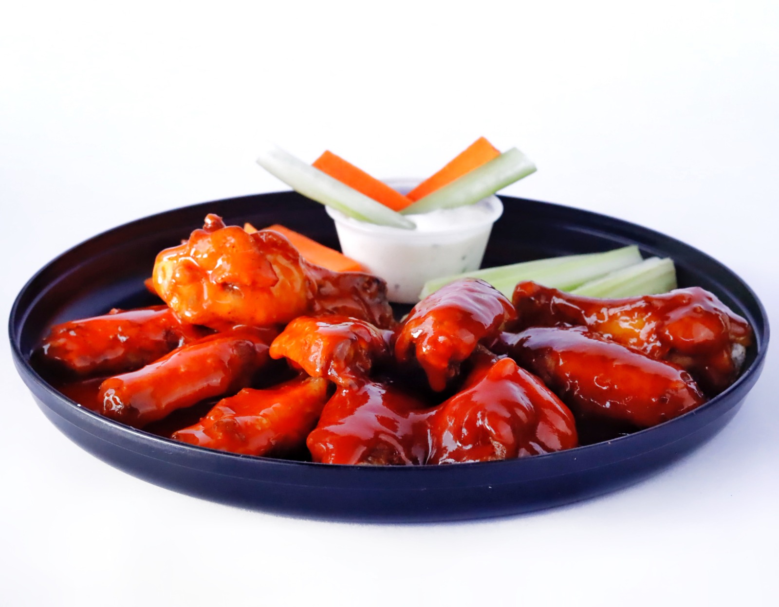 Alitas fritas y sazonadas con la receta de bandeli, aderezadas con tu aderezo favorito.
