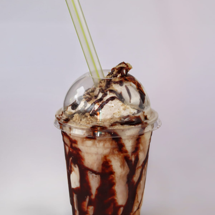 Bebida preparada a base de leche entera con galletas oreo y decorada con bola de crema batida.
