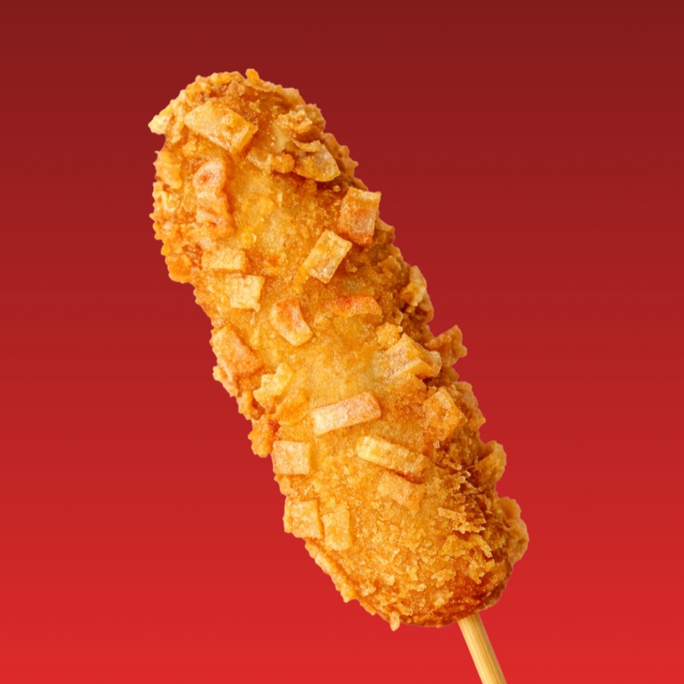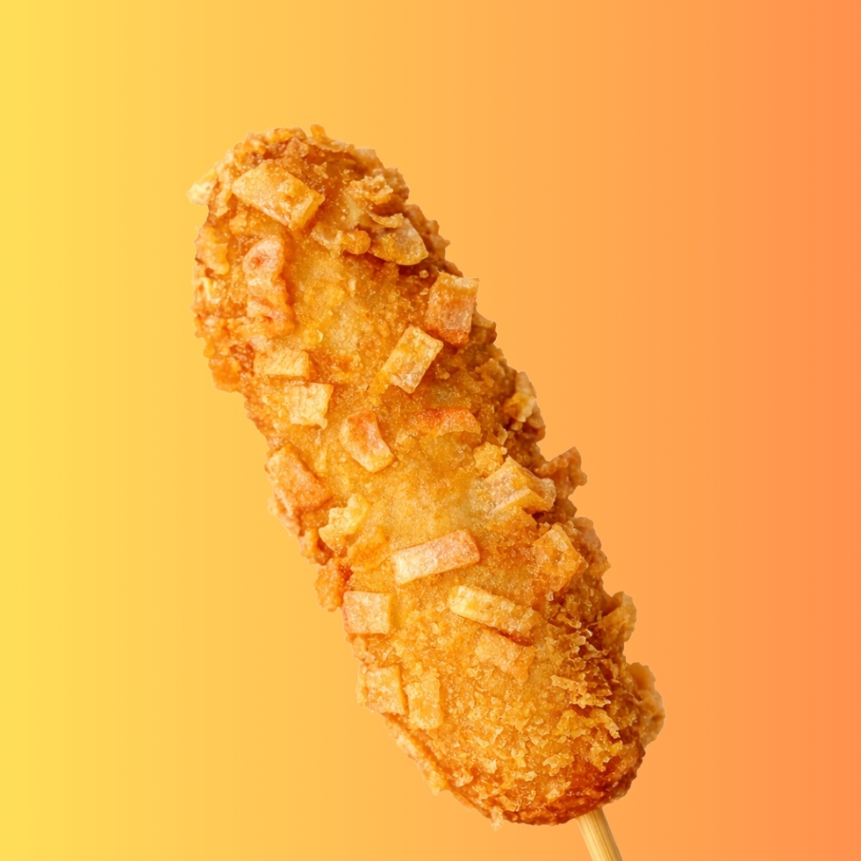 Banderilla rellena de salchicha, acompañada de delicioso topping Panko