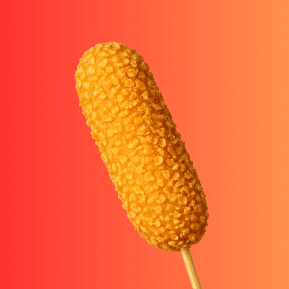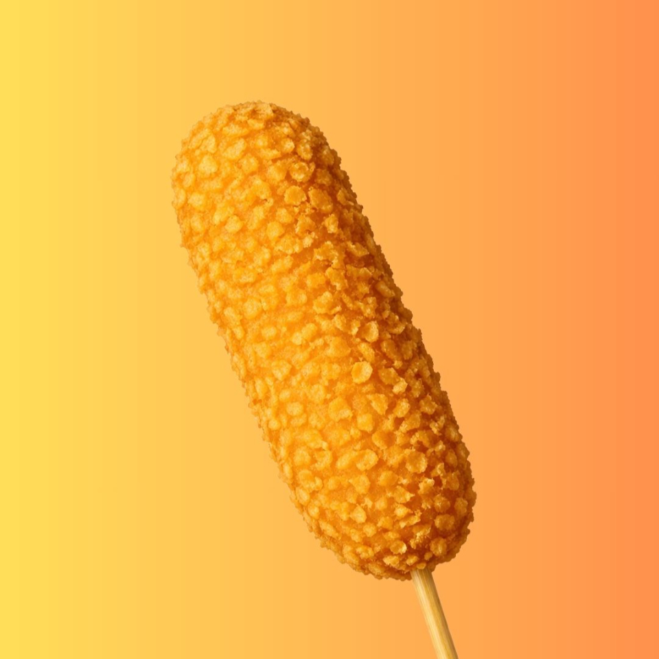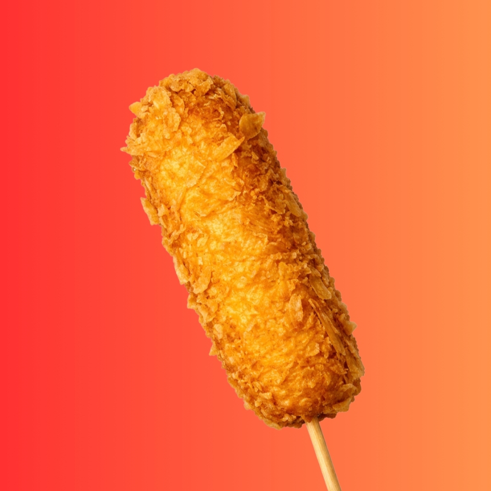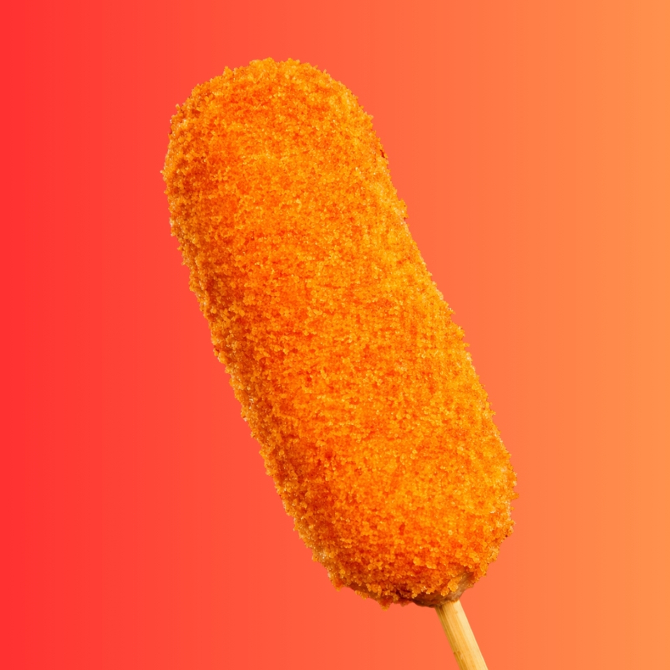 Banderilla rellena de salchicha y queso, acompañada de delicioso topping de Panko