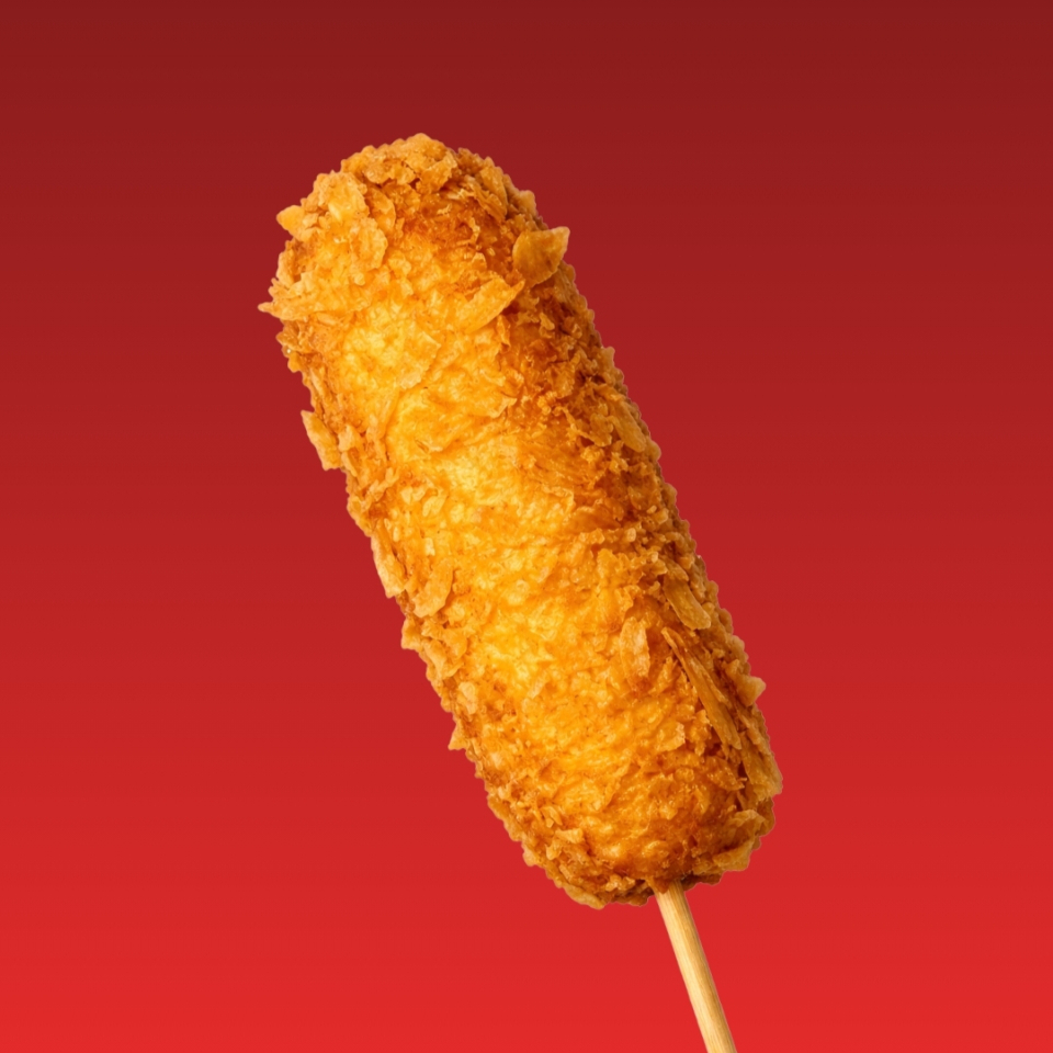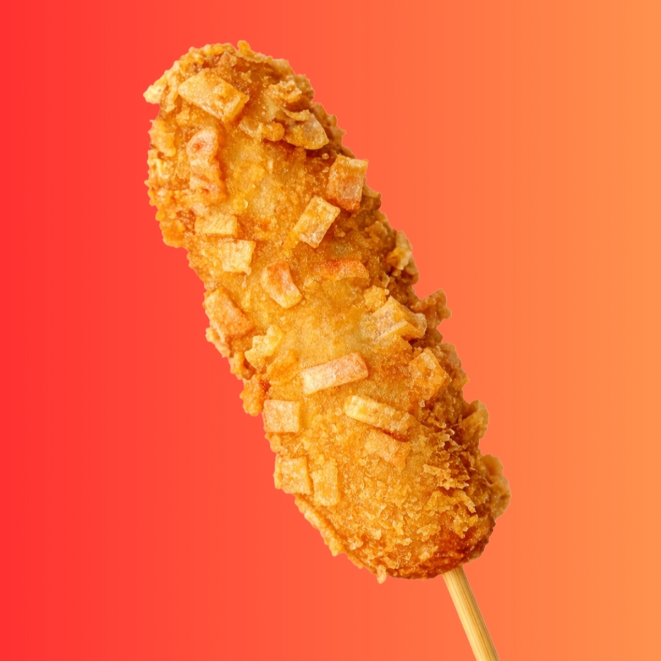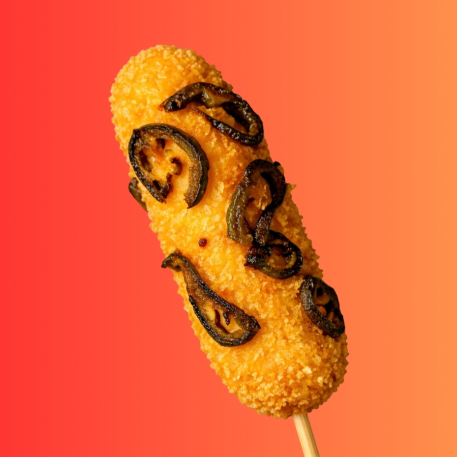 Banderilla rellena de queso, acompañada de delicioso topping de Panko