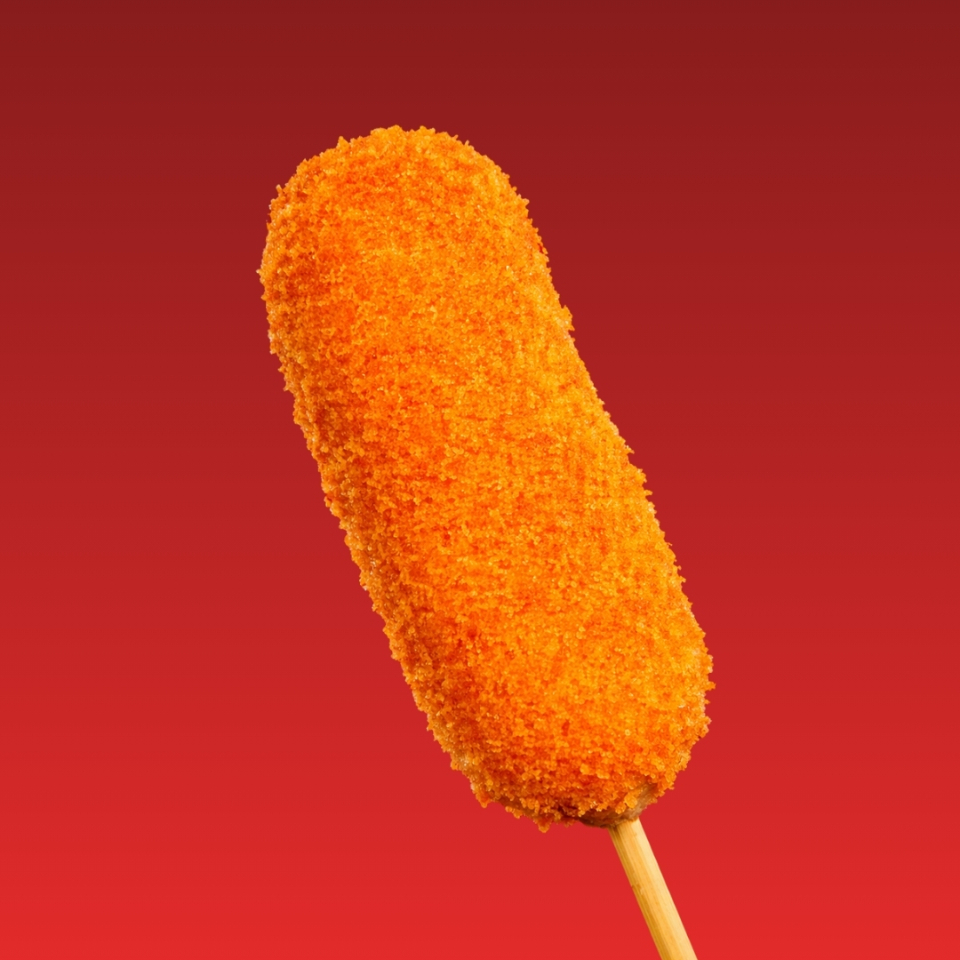 BANDERILLA RELLENA DE QUESO MOZARELLA CON CAPIADO DE CHEETOS POFFS