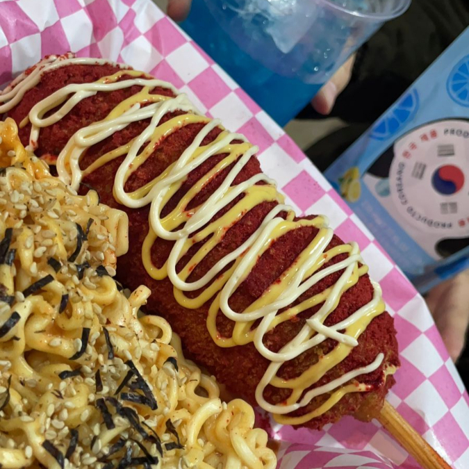 Buldak preparado*1 + Banderilla Flaming hot*1 + bebidas coreanas*1