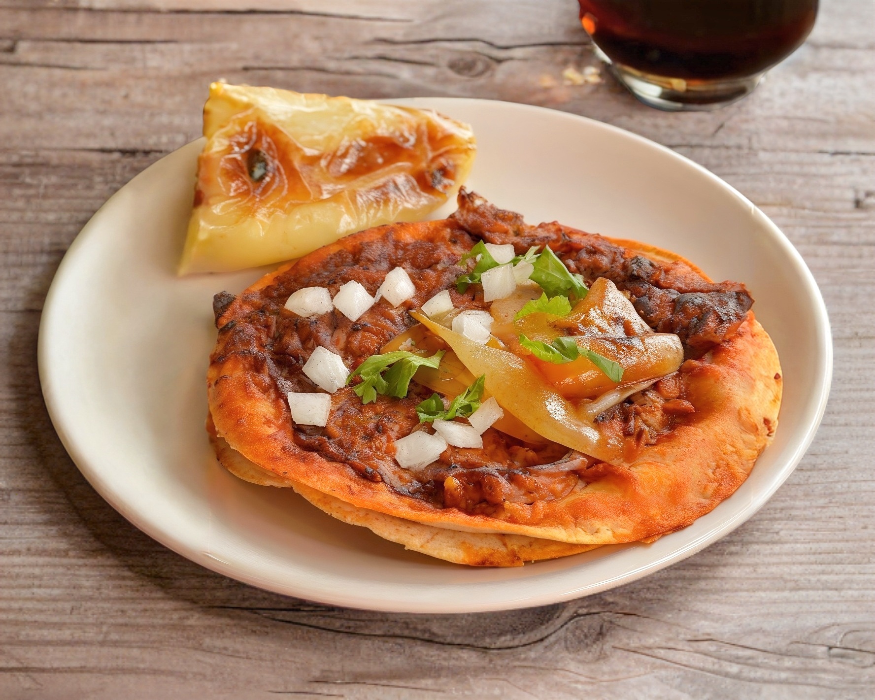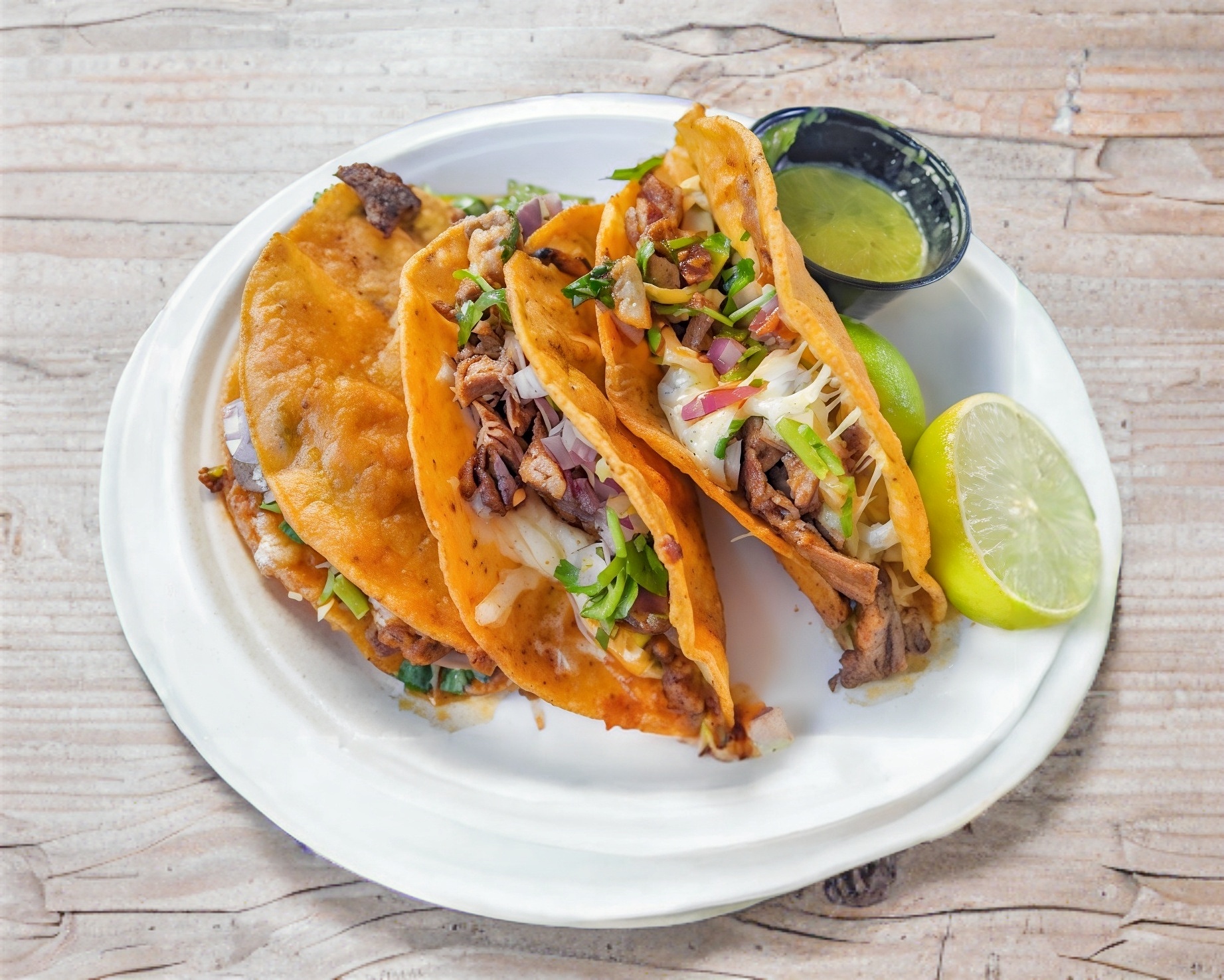 1 Taco de barbacoa dorado, dos tortilla de maíz, se envía aparte cebolla, limón y chile.