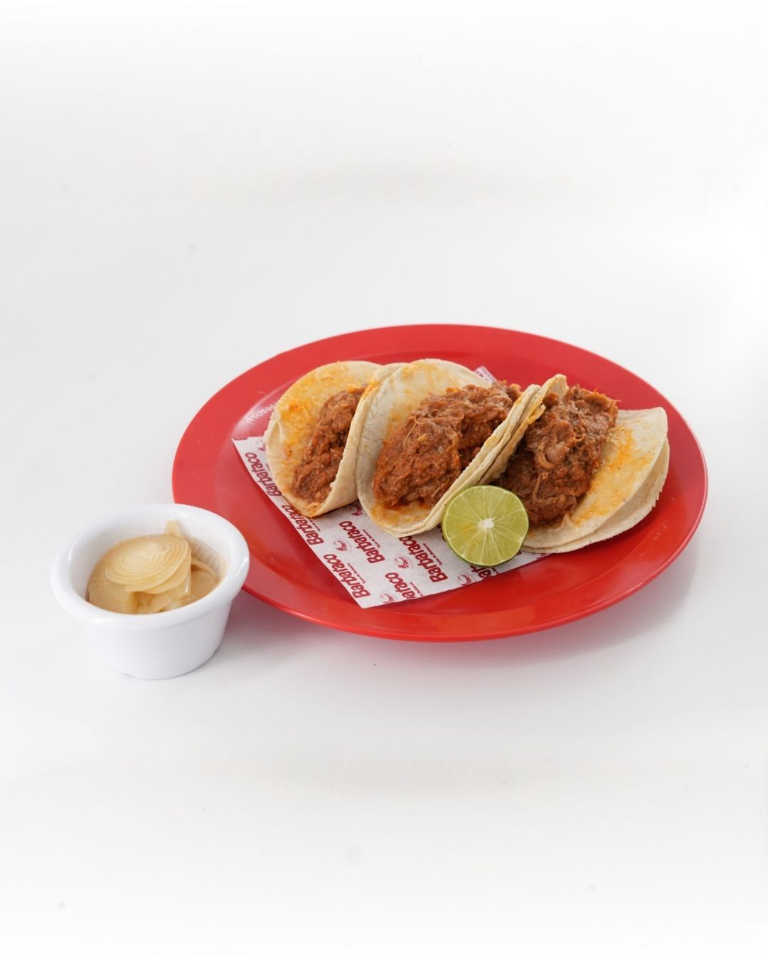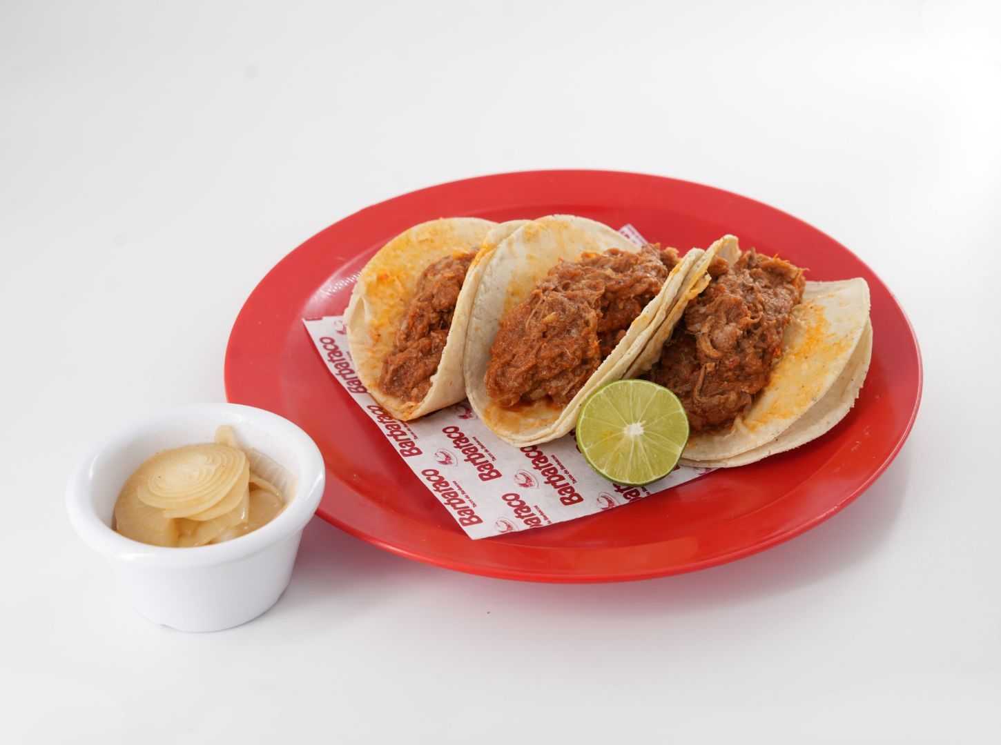 Combo de tres tacos de barbacoa, Una Bebida a elegir (Agua Fresca o Refresco).