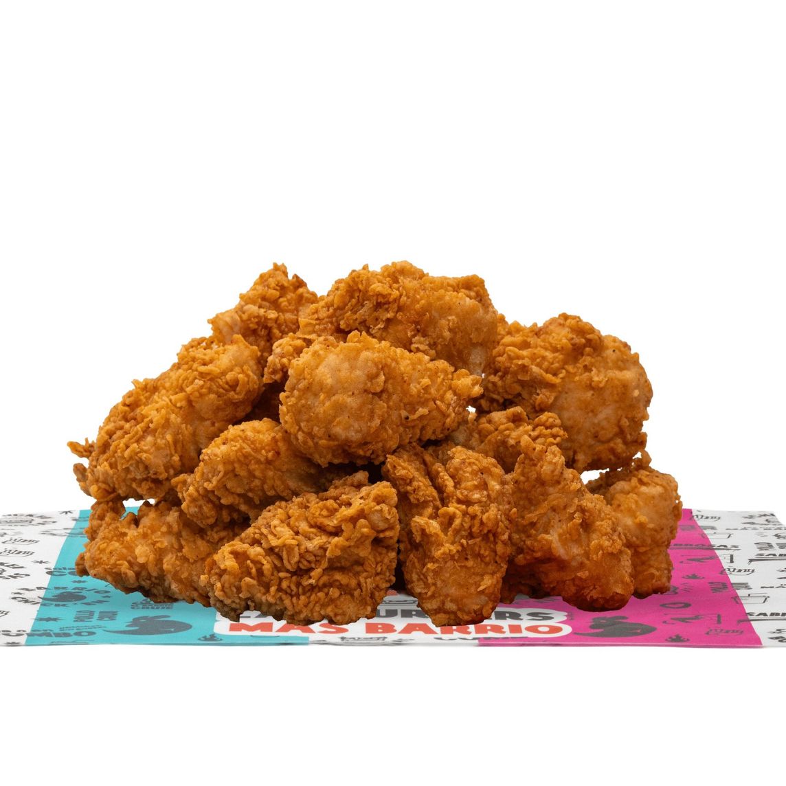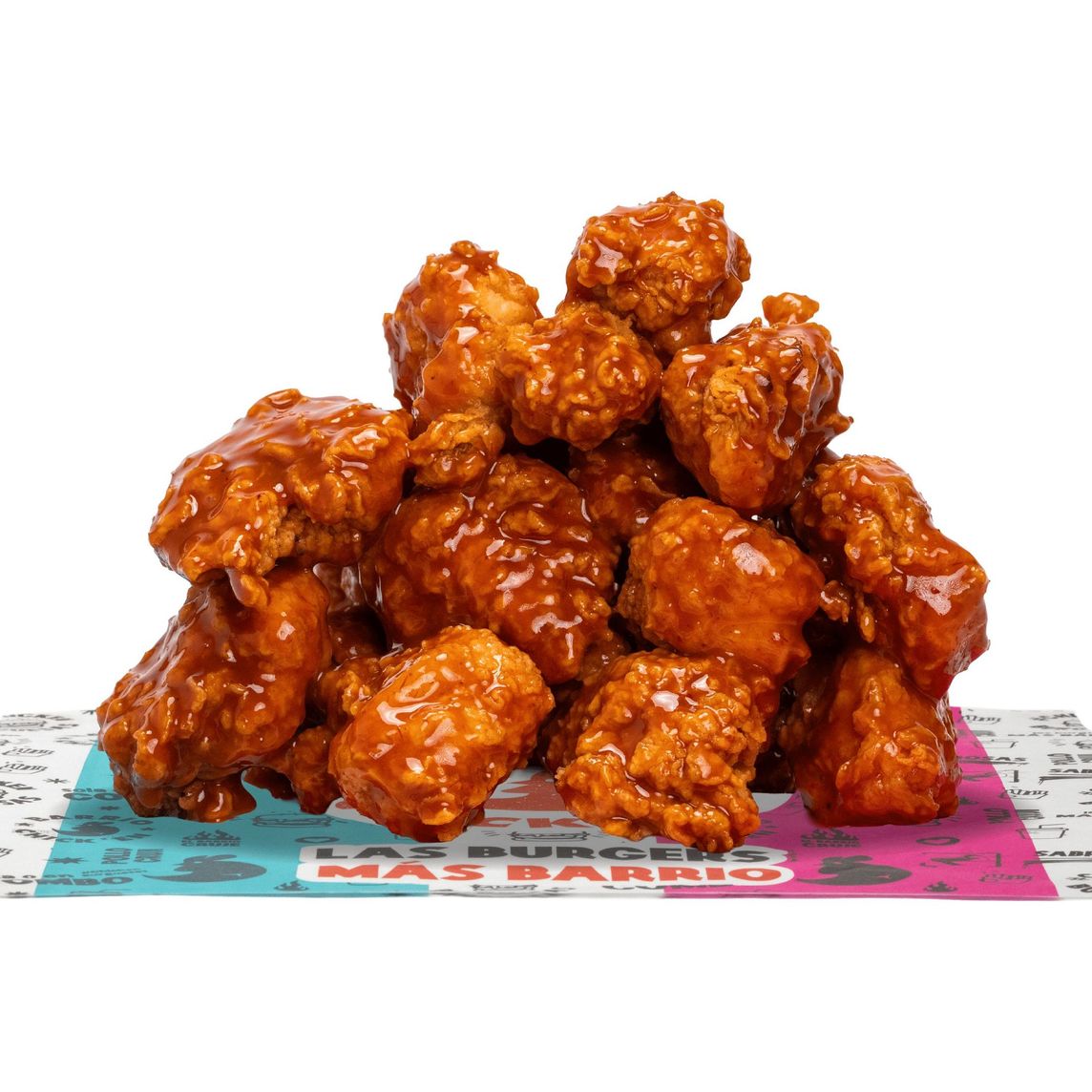 20 piezas de jugosos y crujientes boneless, bañados en el sabor que más te guste. Incluye dos deliciosas salsas.