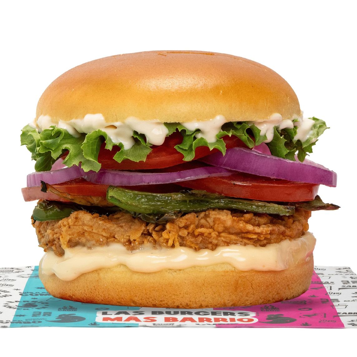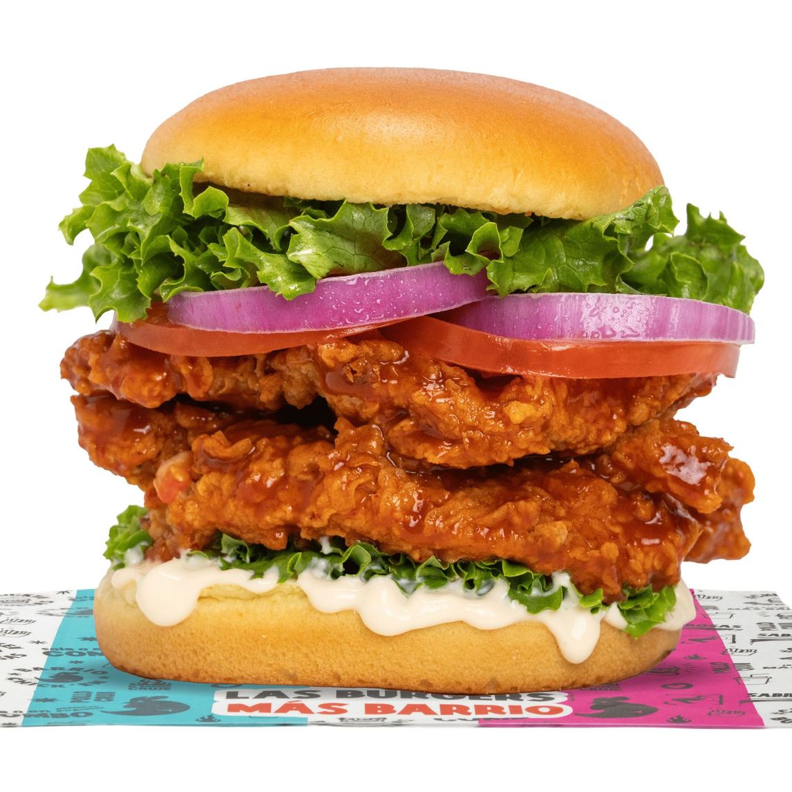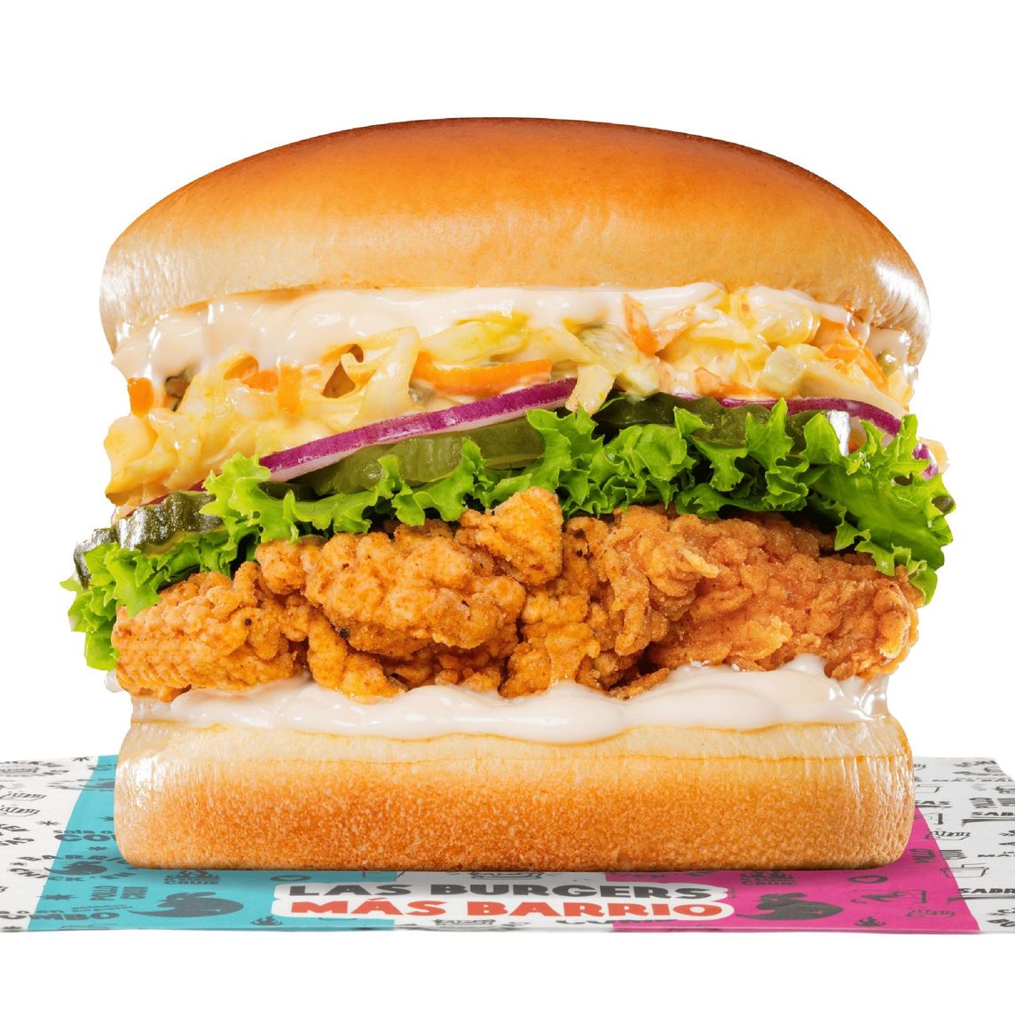 Hamburguesa de pollo crispy, lechuga fresca, jitomate, cebolla, pepinillos y un toque de aderezo con salsa Búffalo.