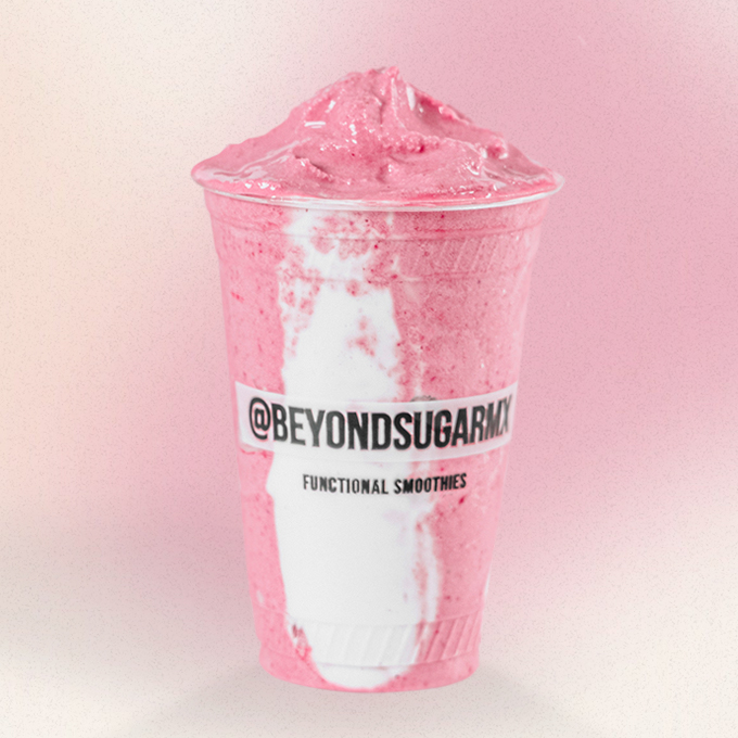 Bebida de leche de coco y fresas con 22 gramos de proteína vegana, yogurt griego, betabel, 26 vitaminas y minerales