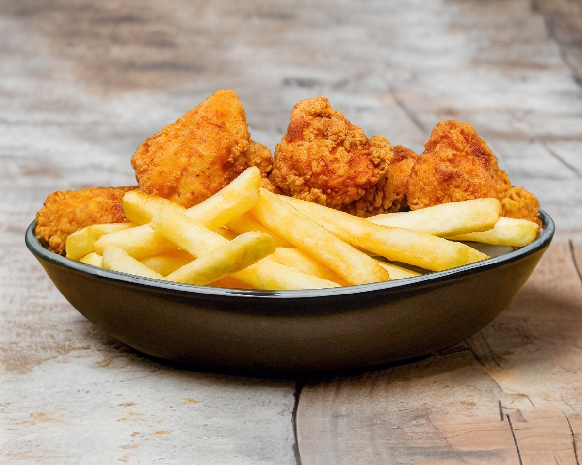 1/2 kg De boneless naturales fritas sin bañar para que escojas tus salsas preferidas, incluye una porción de papas a la francesa gratis.