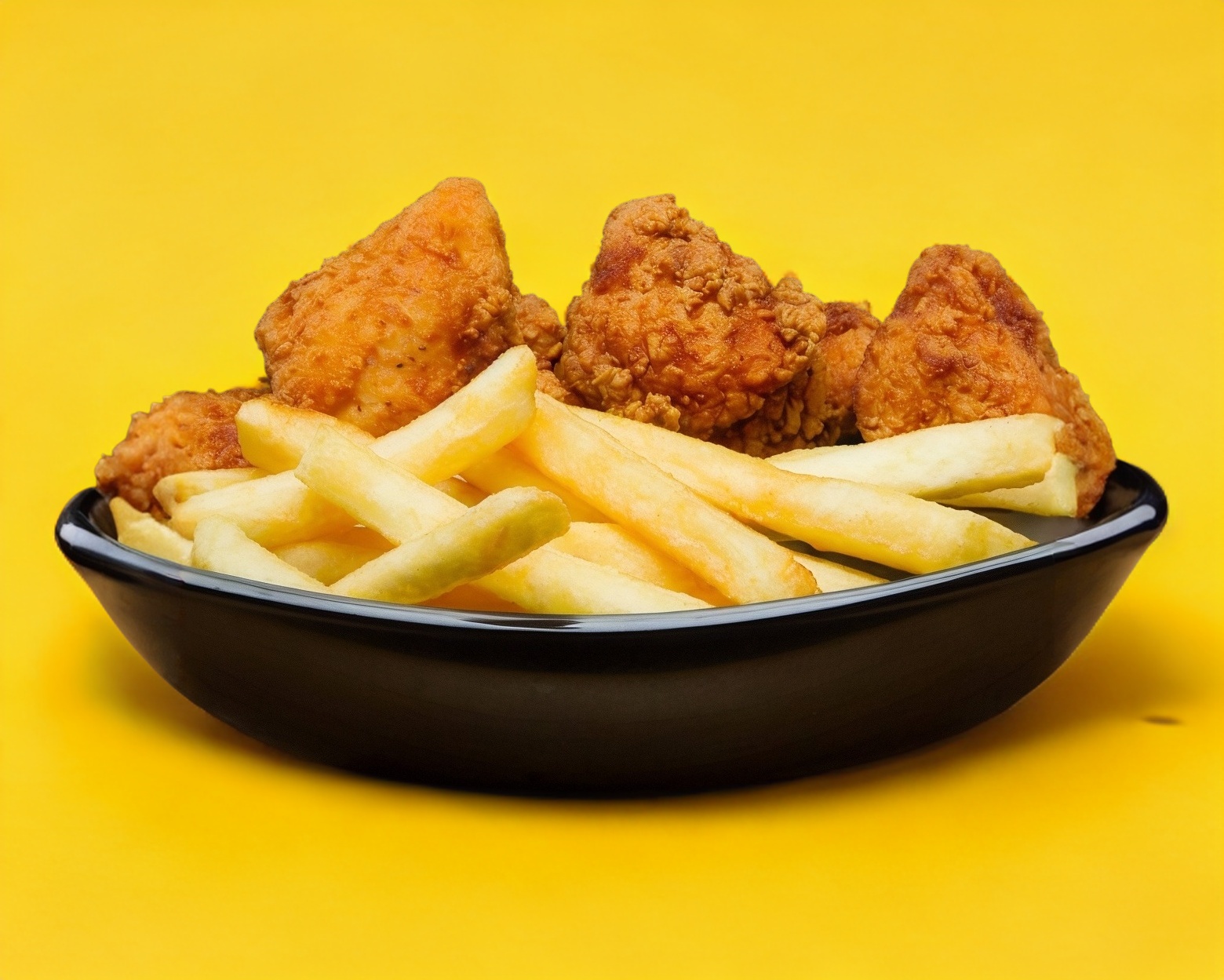 1/2 Kilo de boneless naturales fritas sin bañar para que escojas tus salsas preferidas, incluye una porción de papas a la francesa gratis.