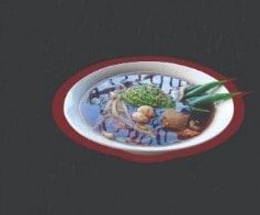 Consome con pasta ramen, huevo cocido, arrachera, germen de soya, champiñones y cebollin