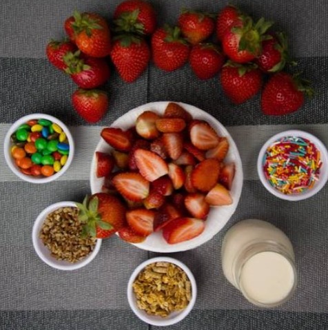 Fresas picadas con crema de bionico y cereal